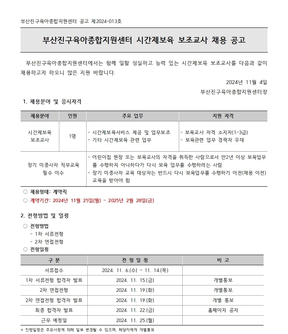 [ä¿ë°ø°í] ºÎ»êÁø±¸À°¾ÆÁ¾ÇÕÁö¿ø¼¾ÅÍ ½Ã°£Á¦º¸À° º¸Á¶±³»ç ä¿ë °ø°í