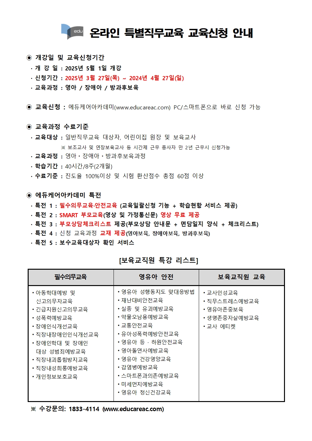 [¿¡µàÄÉ¾î¾ÆÄ«µ¥¹Ì] ¿Â¶óÀΠƯº°Á÷¹«±³À° ±³À°½Åû ¾È³»