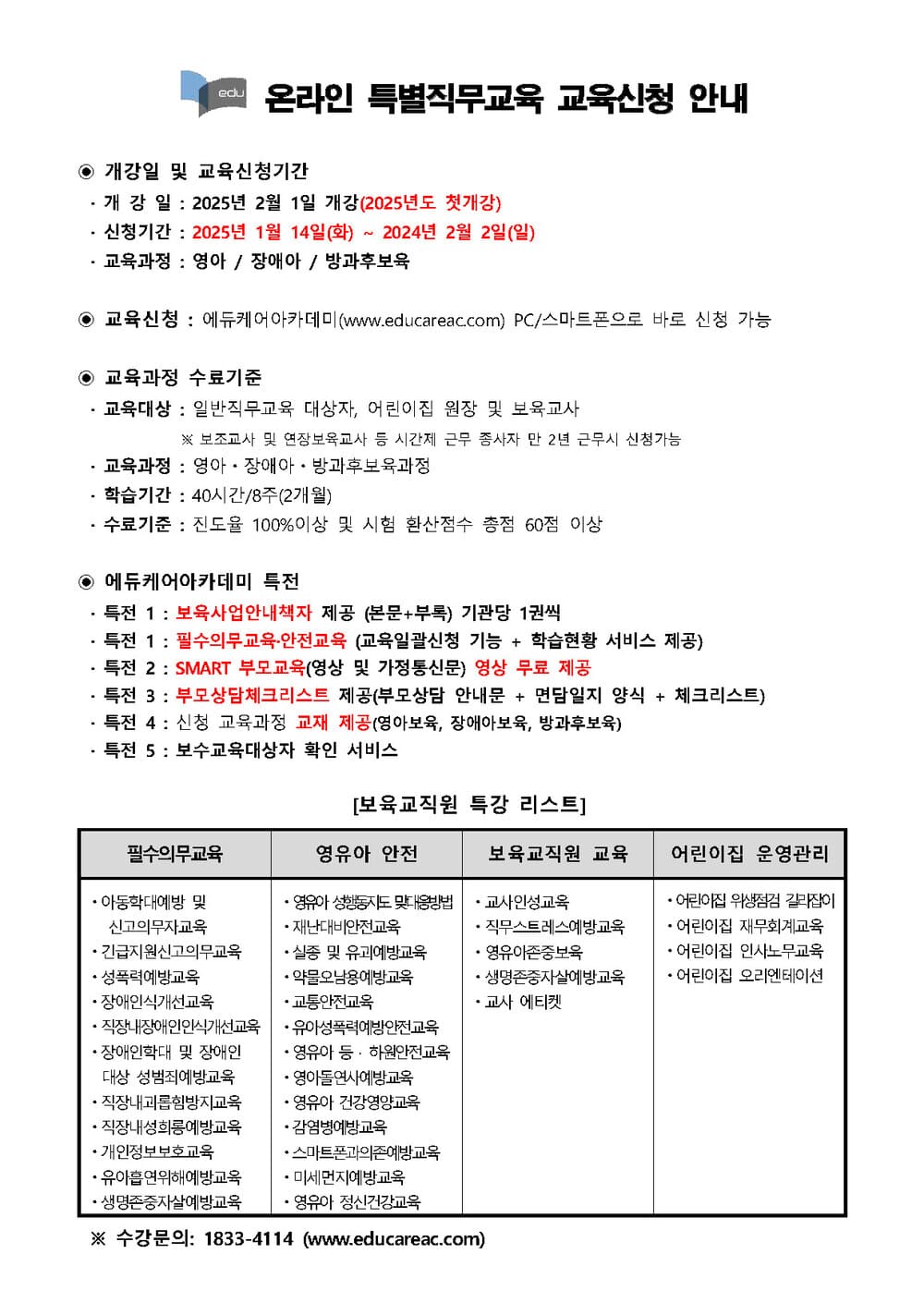 [¿¡µàÄÉ¾î¾ÆÄ«µ¥¹Ì] ¿Â¶óÀΠƯº°Á÷¹«±³À° ±³À°½Åû ¾È³»
