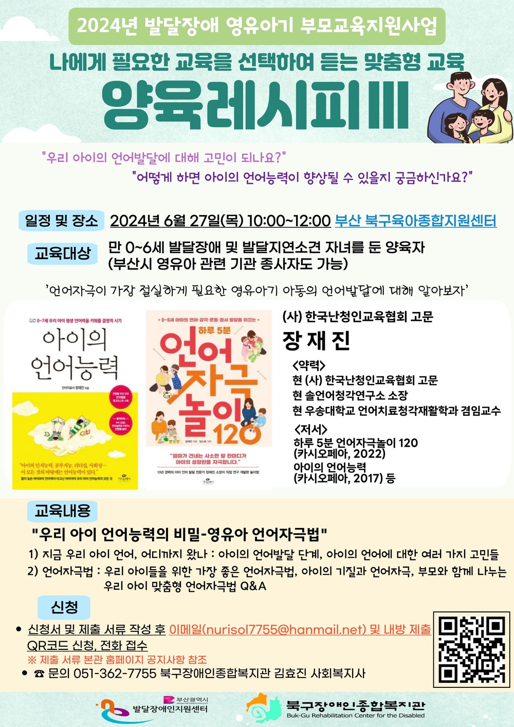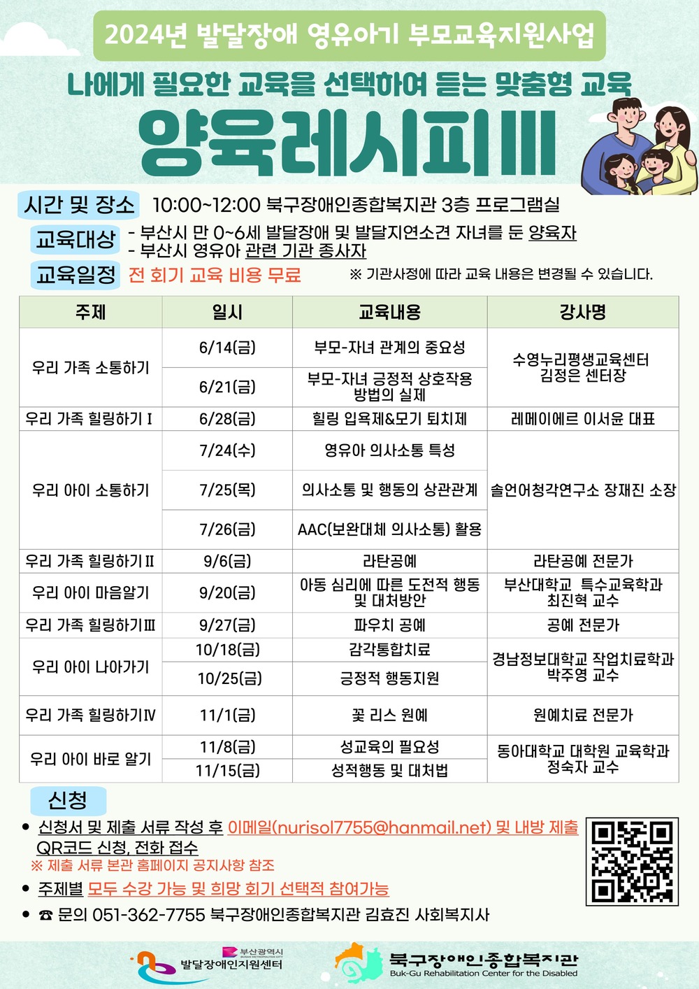2024³â ¹ß´ÞÀå¾Ö ¿µÀ¯¾Æ±â ºÎ¸ð±³À°Áö¿ø»ç¾÷ - ³ª¿¡°Ô ÇÊ¿äÇÑ ±³À°À» ¼±ÅÃÇÏ¿© µè´Â ¸ÂÃãÇü ±³À° ¡¸¾çÀ°·¹½ÃÇÇ¥²¡¹ ¾È³»