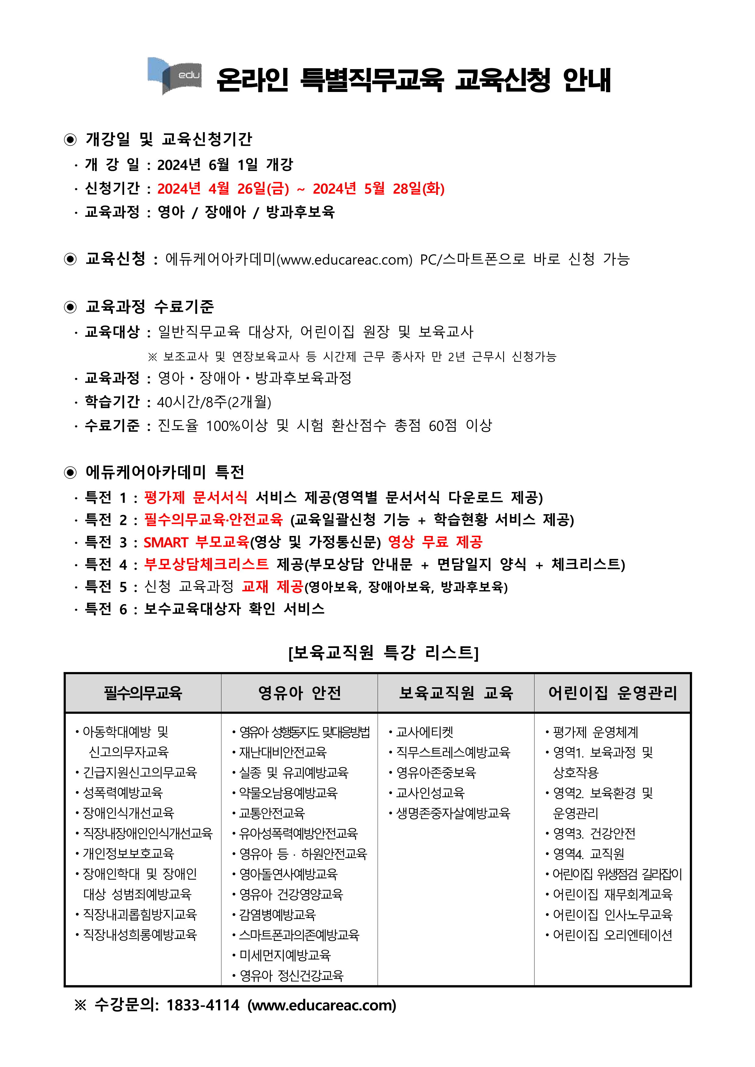 [¿¡µàÄÉ¾î¾ÆÄ«µ¥¹Ì] ¿Â¶óÀΠƯº°Á÷¹«±³À° ±³À°½Åû ¾È³»