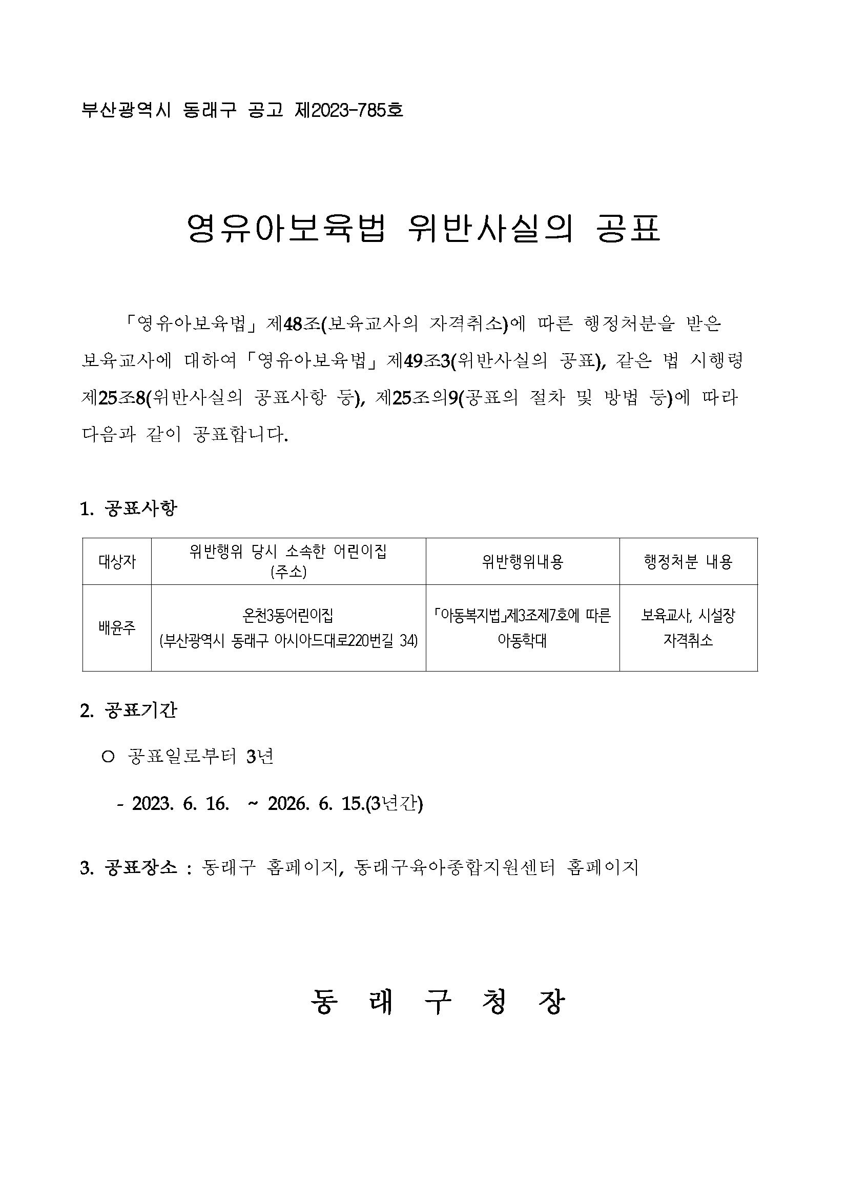 [°ø°í Á¦2023-785È£] ¿µÀ¯¾Æº¸À°¹ý À§¹Ý»ç½ÇÀÇ °øÇ¥