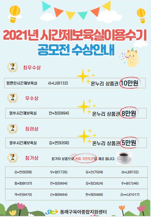 2021³â ¾ó¾¥&¸¾ÆíÇÑ ½Ã°£Á¦º¸À°½Ç ÀÌ¿ë¼ö±â °ø¸ðÀü ¼ö»ó¾È³»