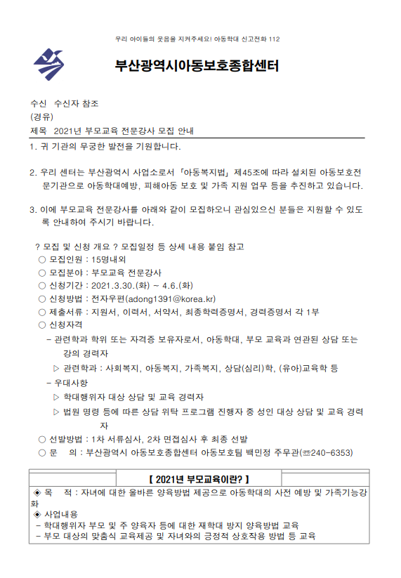 | 2021³â ºÎ¸ð±³À° Àü¹®°»ç ¸ðÁý ¾È³» | |||||