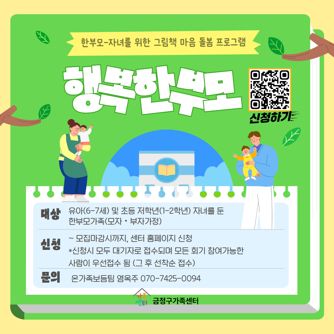 À̹ø¿¡ [ÇѺθð°¡Á·À» À§ÇÑ Æ¯º°ÇÑ ±×¸²Ã¥ ÇÁ·Î±×·¥]À» ¸¶·ÃÇß½À´Ï´Ù. ºÎ¸ð¿Í Àڳడ ÇÔ²² Ã¥À» ÅëÇØ ´õ °¡±î¿öÁö´Â ½Ã°£À» ¼±¹°ÇØ µå¸³´Ï´Ù. *´ë»ó: À¯¾Æ(6-7¼¼) ¹× Ãʵî 1~2Çгâ Àڳฦ µÐ ÇѺθð°¡Á· (¸ðÀÚ°¡Á¤, ºÎÀÚ°¡Á¤) *ÀÏÁ¤: 6~11¿ù Áß Åä¿äÀÏ 14~16½Ã (ÀÚ¼¼ÇÑ ÀÏÁ¤Àº ¾È³»¹® Âü°í) *½Åû: ȨÆäÀÌÁö ½Åû 🌟 ÀÌ·± ºÐµé²² ÃßÃµÇØ¿ä!