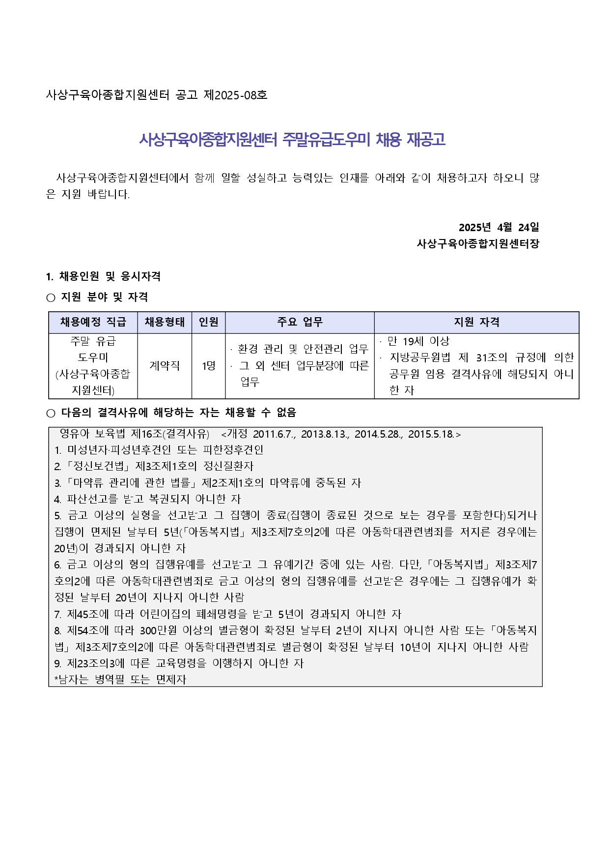 [ä¿ë°ø°í] »ç»ó±¸À°¾ÆÁ¾ÇÕÁö¿ø¼¾ÅÍ ÁÖ¸»À¯±Þµµ¿ì¹Ì ä¿ë