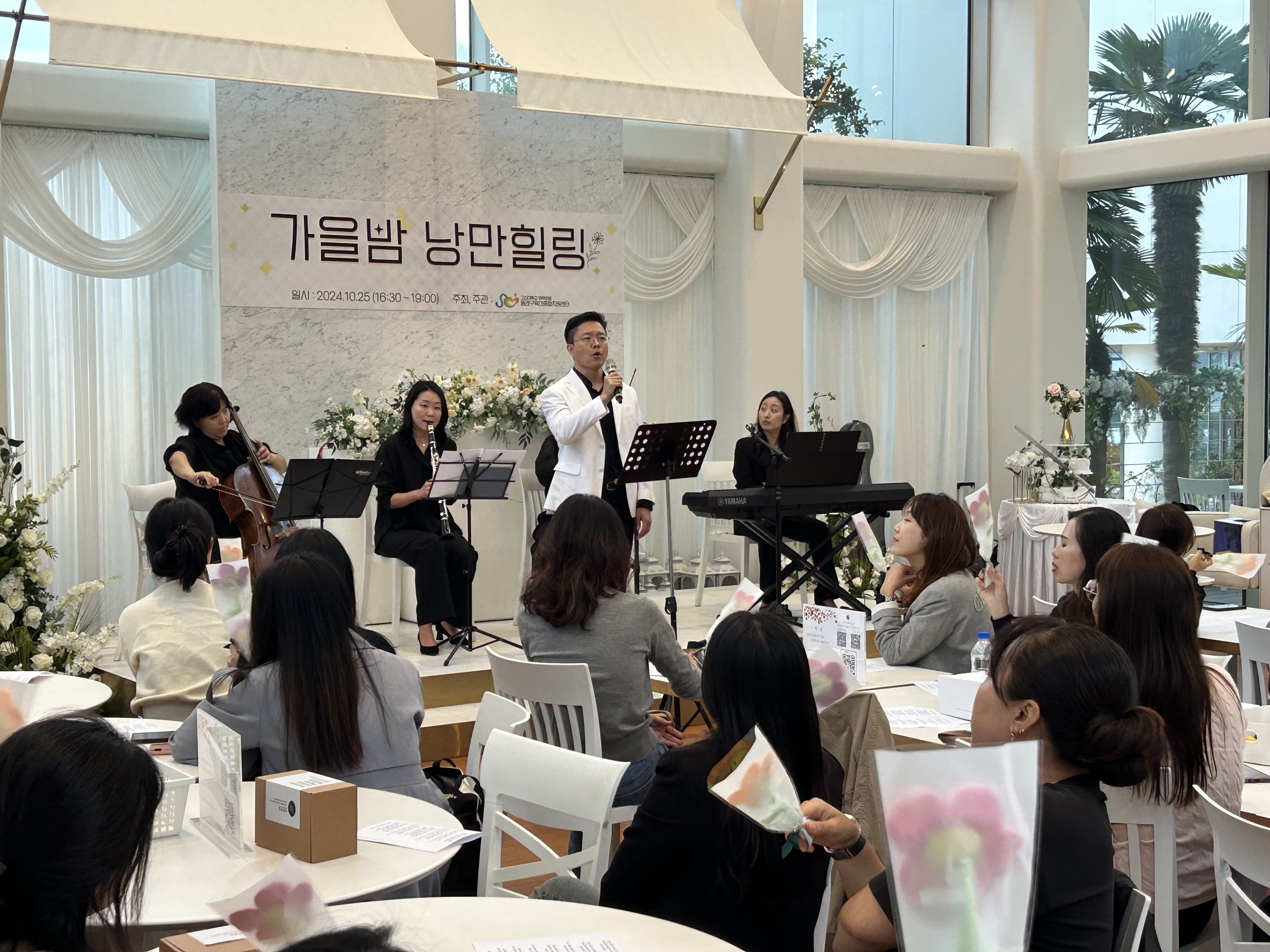 1. »ç ¾÷ ¸í: ¹®ÈÇà»ç – °¡À»¹ã ³¶¸¸ Èú¸µ 2. ÀÏ ½Ã: 2024.10.25.(±Ý) 16:30~19:00 3. Àå ¼Ò: ¿þµù ´õ À±, ¹ÚÇØÀ± Åë¿µÇØ¹°¹ä»ó ±¤¾ÈÁ¡ 4. ´ë »ó: µ¿·¡±¸ °ü³» ¾î¸°ÀÌÁý º¸À°±³Á÷¿ø 110¸í 5. ³» ¿ë: ¾î¸°ÀÌÁý °Ý¹«·Î ÀÎÇØ ÁöÄ£ º¸À°±³Á÷¿øÀÇ Á÷¹«½ºÆ®·¹½º ¿ÏÈ¿Í Á¤¼ Áö¿øÀ» À§ÇÑ ¿ø¿¹·À½¾Ç Ä¡À¯ Èú¸µ ÇÁ·Î±×·¥