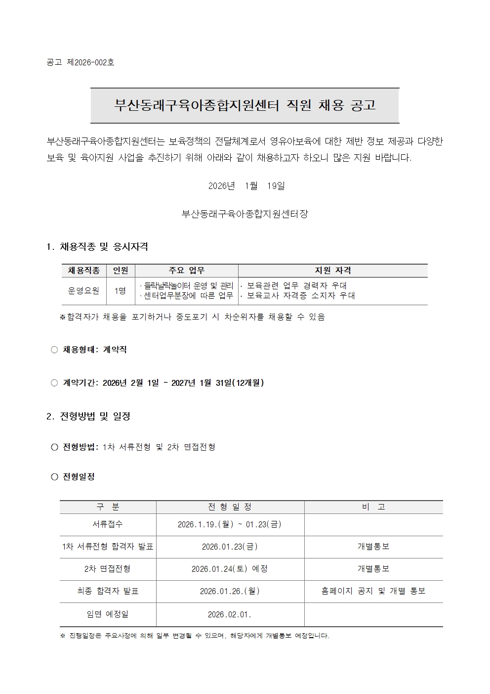[ä¿ë°ø°í] µ¿·¡±¸À°¾ÆÁ¾ÇÕÁö¿ø¼¾ÅÍ Á÷¿ø ä¿ë °ø°í