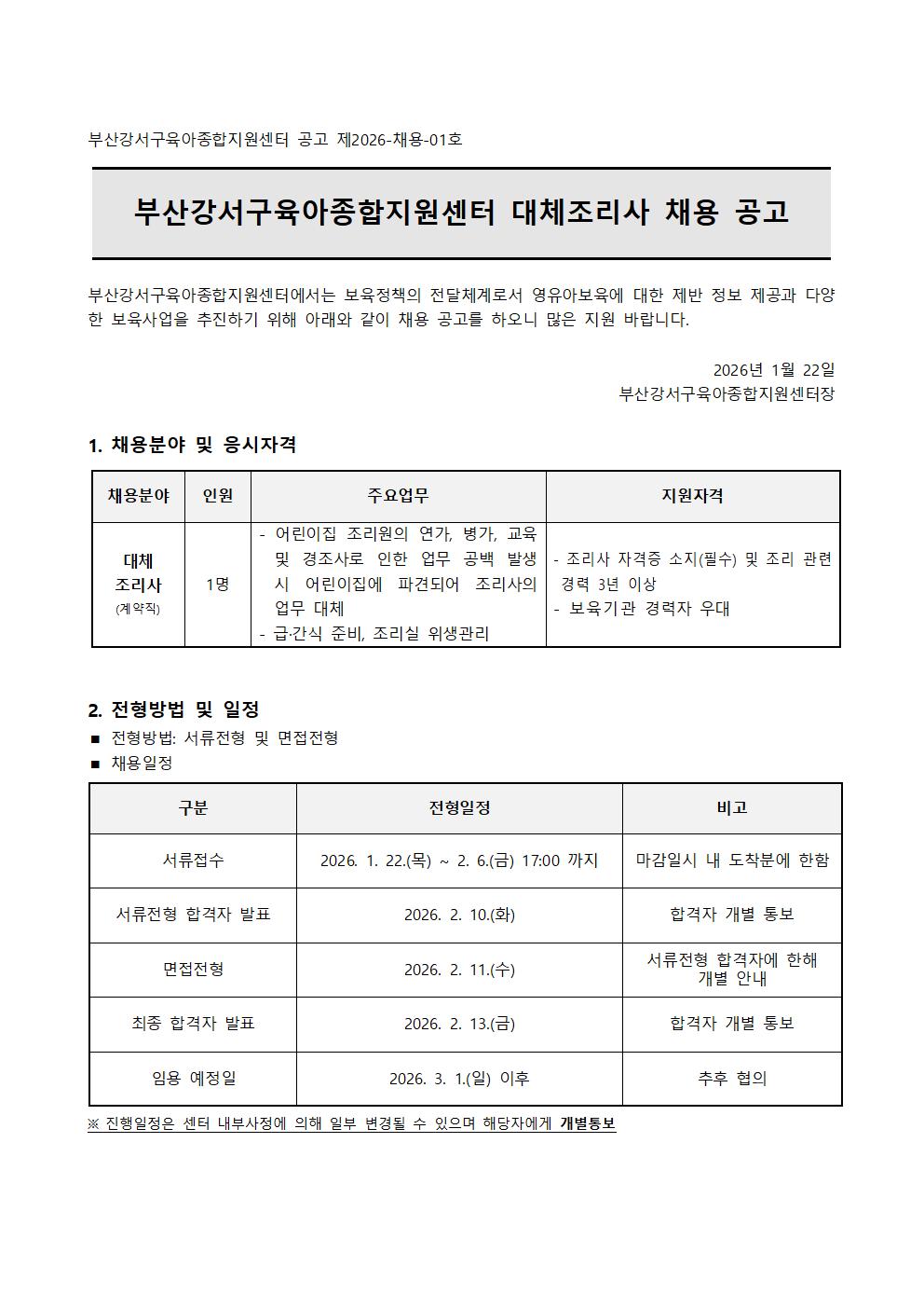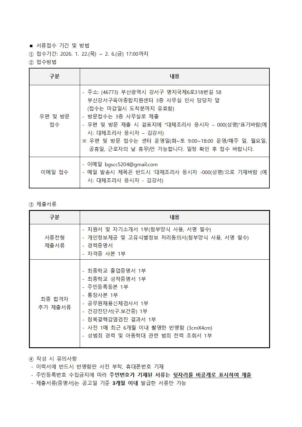 [ä¿ë°ø°í] ºÎ»ê°¼±¸À°¾ÆÁ¾ÇÕÁö¿ø¼¾ÅÍ ½Å±ÔÁ÷¿ø(´ëüÁ¶¸®»ç) ä¿ë °ø°í
