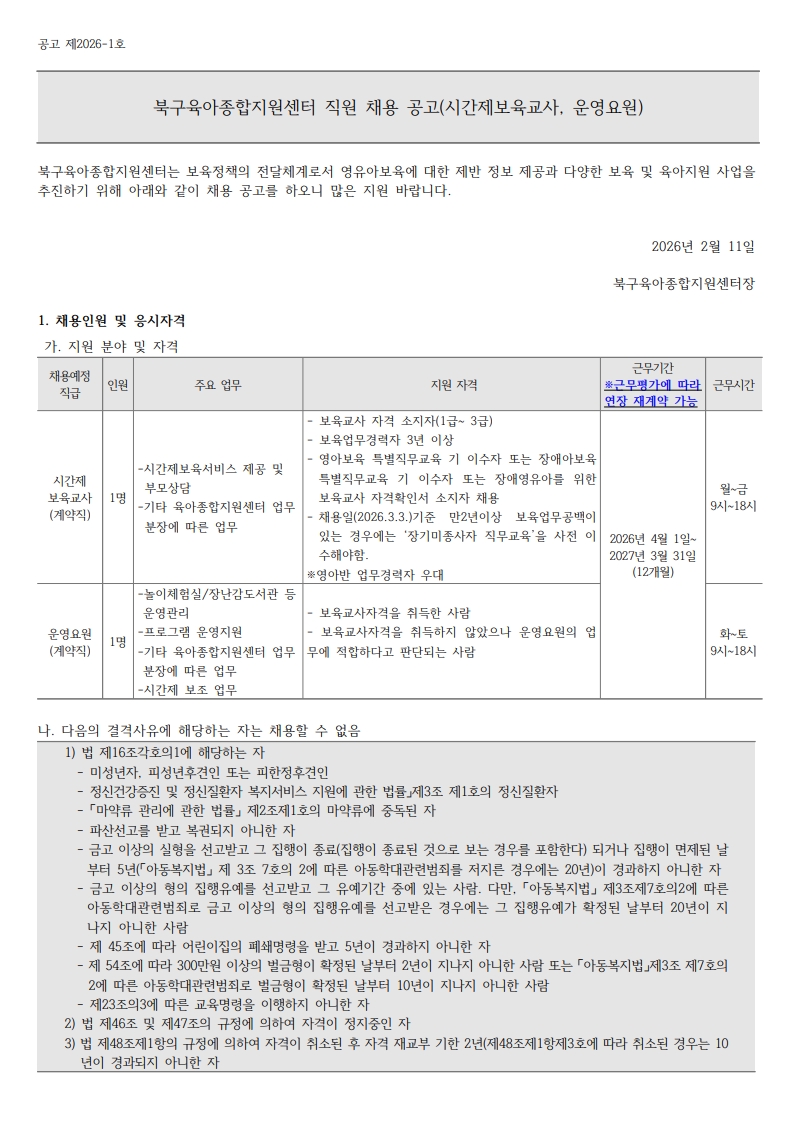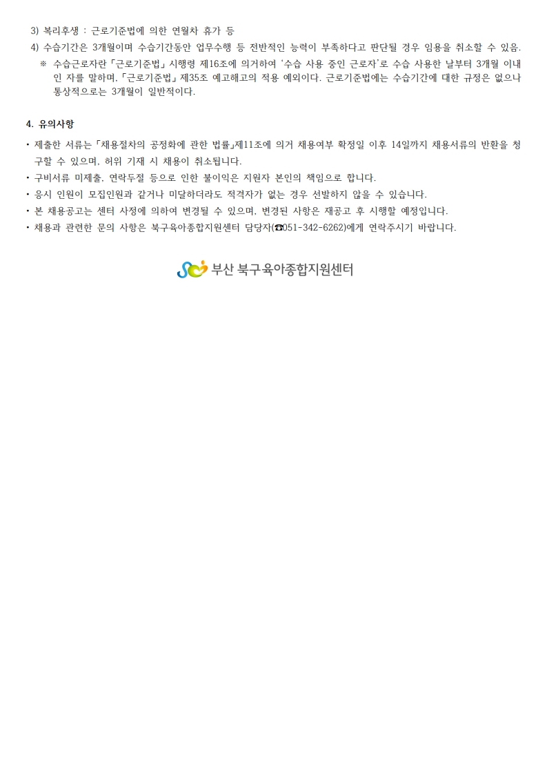 [ä¿ë°ø°í] ºÏ±¸À°¾ÆÁ¾ÇÕÁö¿ø¼¾ÅÍ Á÷¿ø ä¿ë º¯°æ °ø°í(½Ã°£Á¦º¸À°±³»ç, ¿î¿µ¿ä¿ø)