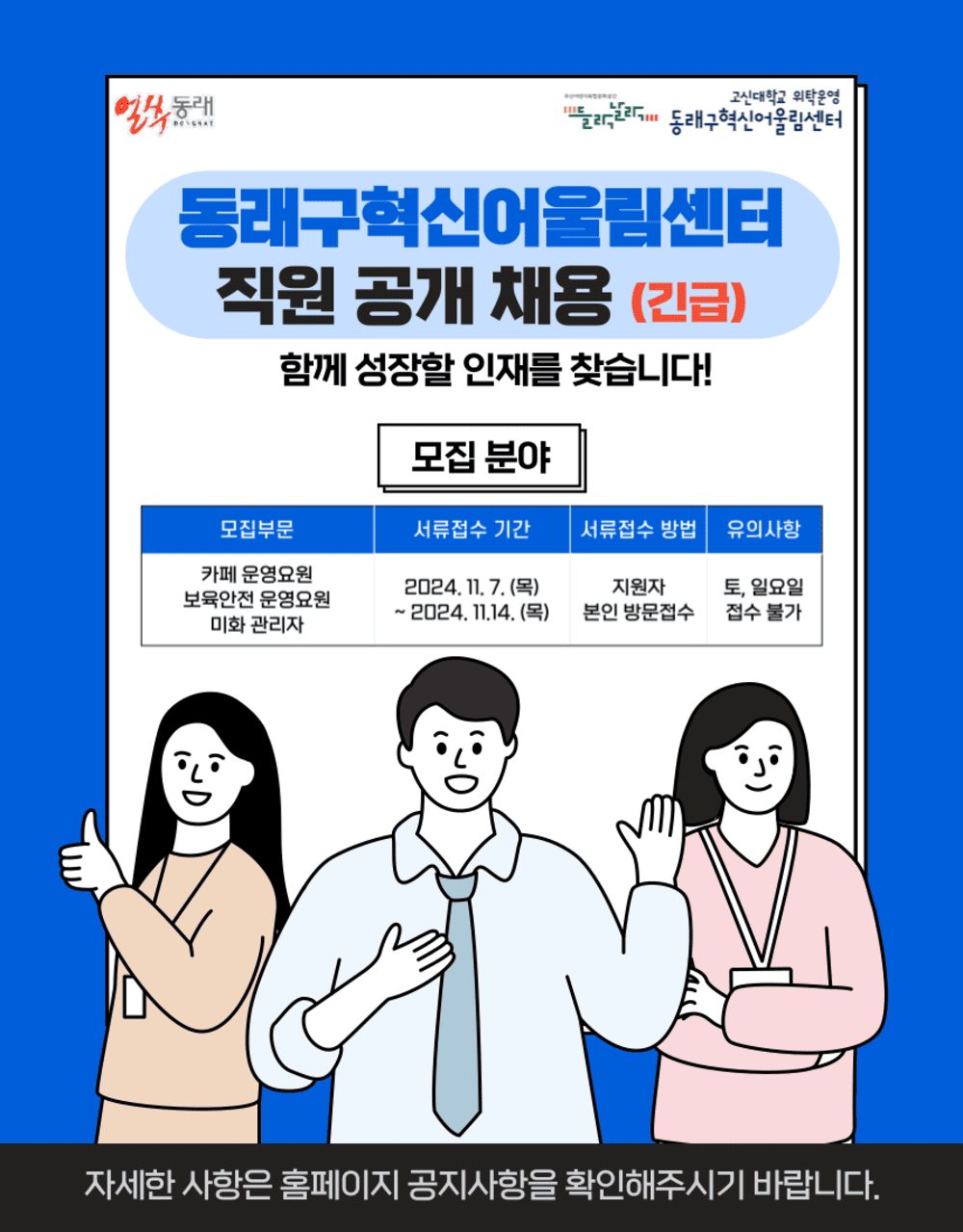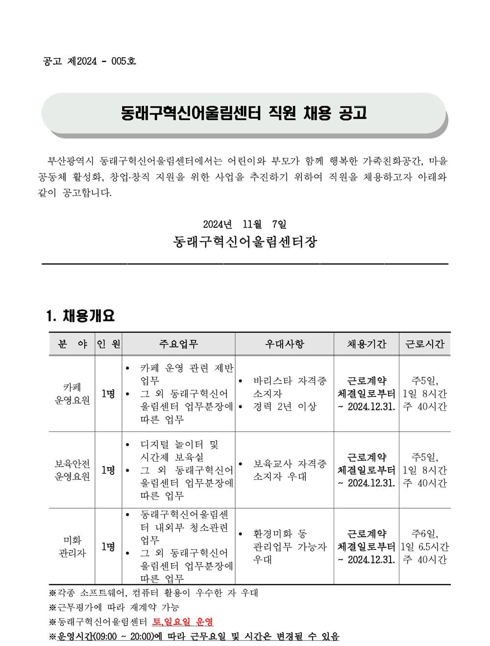 [ä¿ë°ø°í] µ¿·¡±¸Çõ½Å¾î¿ï¸²¼¾ÅÍ Á÷¿ø ä¿ë °ø°í