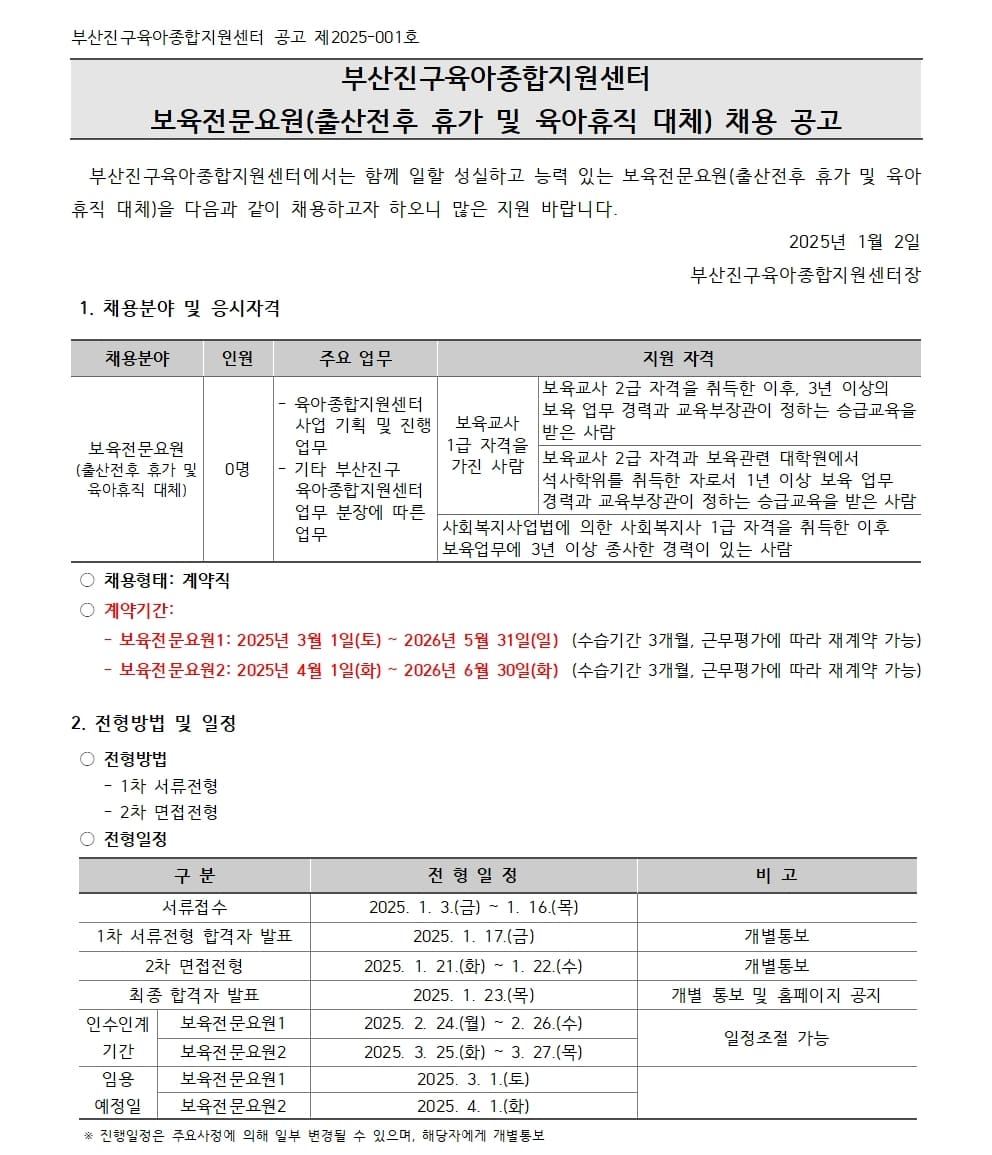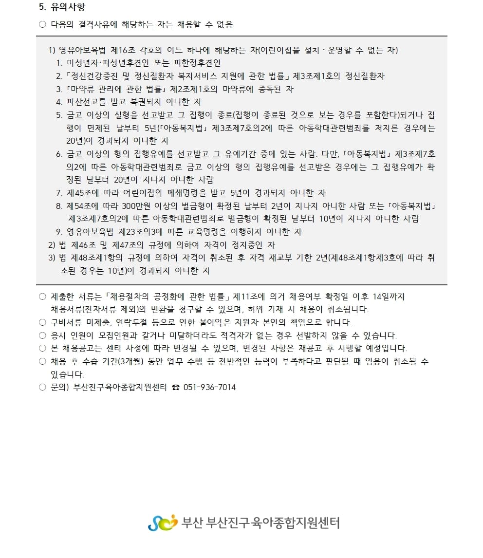 [ä¿ë°ø°í] ºÎ»êÁø±¸À°¾ÆÁ¾ÇÕÁö¿ø¼¾ÅÍ º¸À°Àü¹®¿ä¿ø(Ãâ»êÀüÈÄ ÈÞ°¡ ¹× À°¾ÆÈÞÁ÷ ´ëü) ä¿ë °ø°í