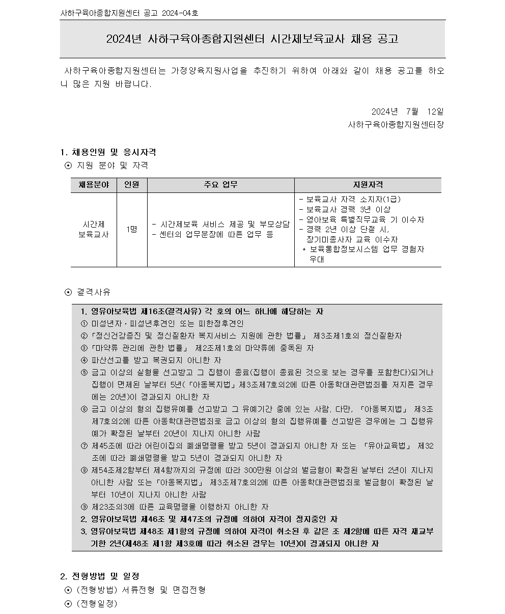 [ä¿ë°ø°í] 2024³â »çÇϱ¸À°¾ÆÁ¾ÇÕÁö¿ø¼¾ÅÍ ½Ã°£Á¦º¸À°±³»ç ä¿ë °ø°í