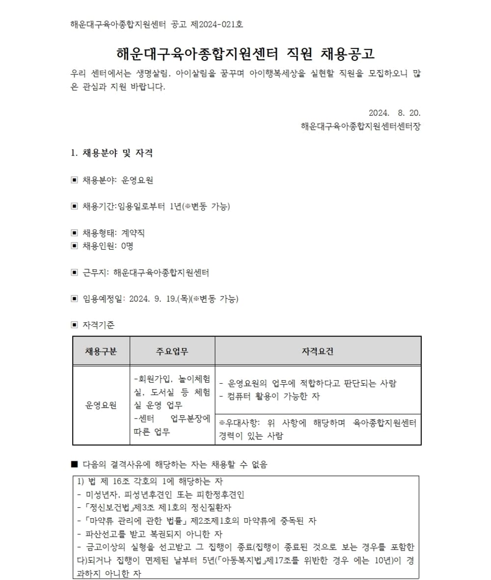 [ä¿ë°ø°í] ÇØ¿î´ë±¸À°¾ÆÁ¾ÇÕÁö¿ø¼¾ÅÍ Á÷¿ø ä¿ë°ø°í