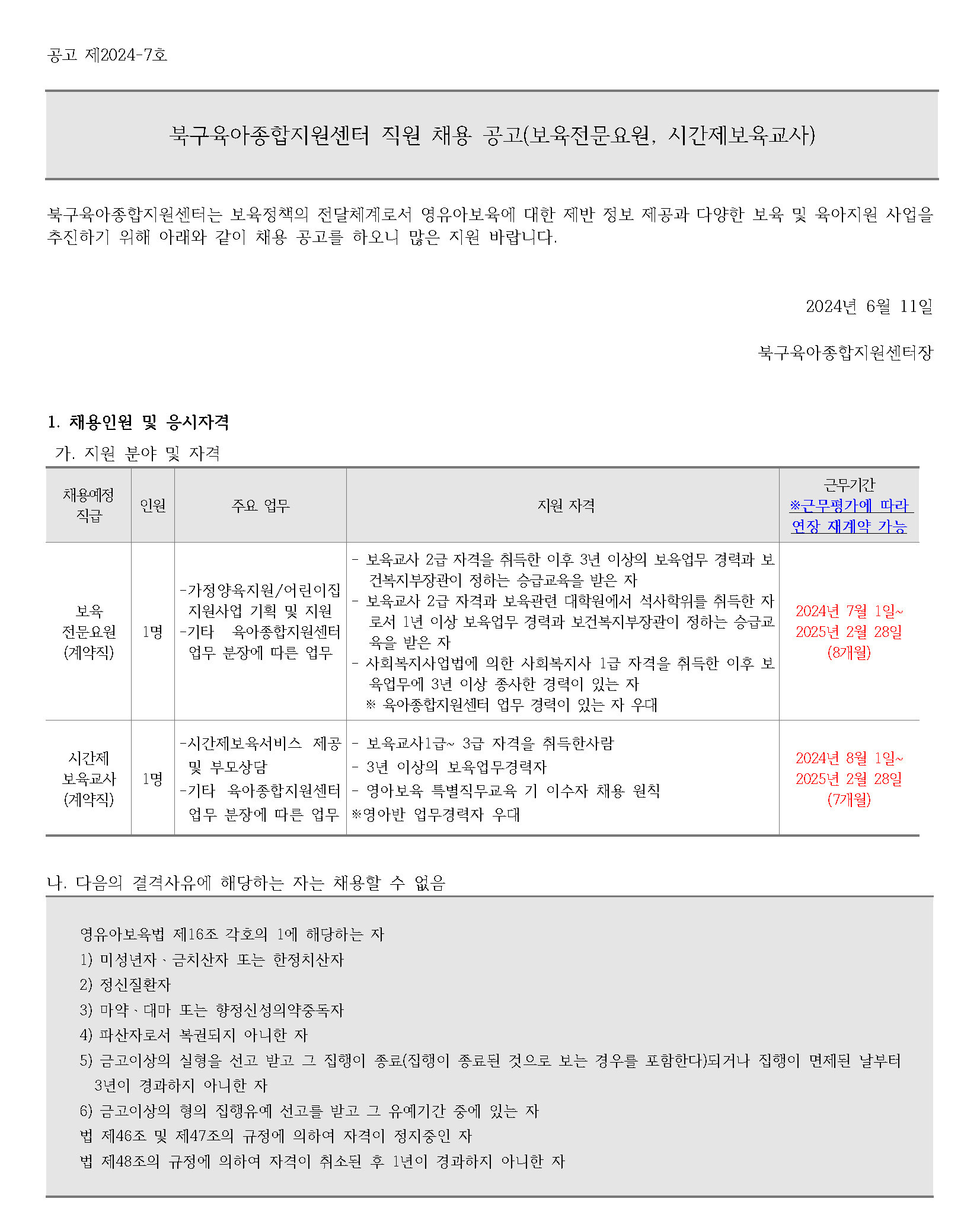 [ä¿ë°ø°í] ºÏ±¸À°¾ÆÁ¾ÇÕÁö¿ø¼¾ÅÍ Á÷¿ø ä¿ë °ø°í(º¸À°Àü¹®¿ä¿ø, ½Ã°£Á¦º¸À°±³»ç)