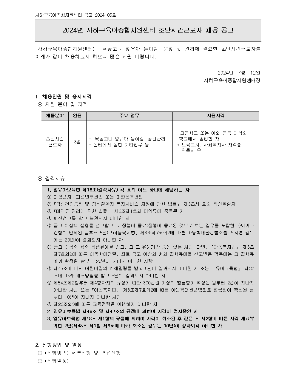 [ä¿ë°ø°í] 2024³â »çÇϱ¸À°¾ÆÁ¾ÇÕÁö¿ø¼¾ÅÍ Ãʴܽð£±Ù·ÎÀÚ Ã¤¿ë °ø°í