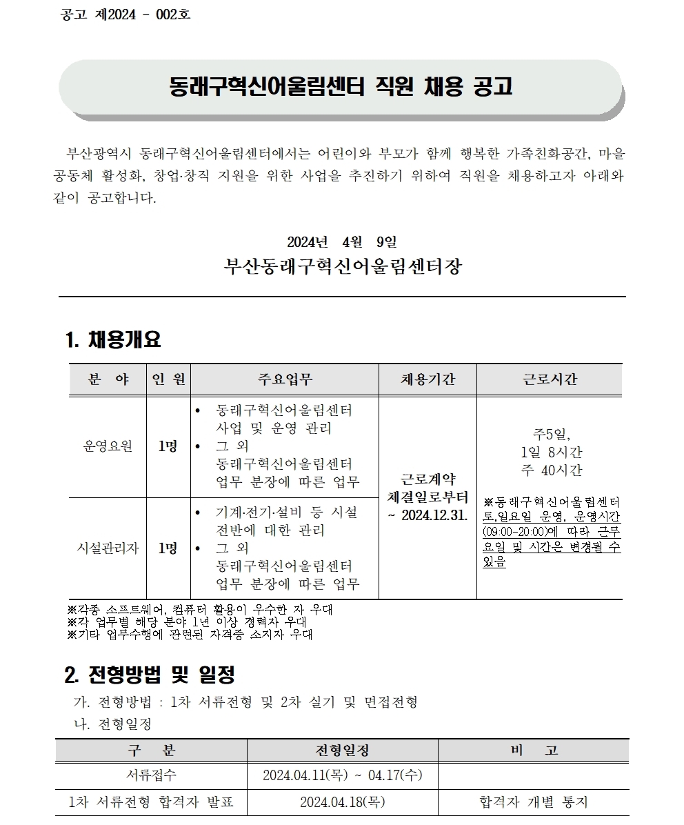 [ä¿ë°ø°í] µ¿·¡±¸Çõ½Å¾î¿ï¸²¼¾ÅÍ Á÷¿ø ä¿ë °ø°í