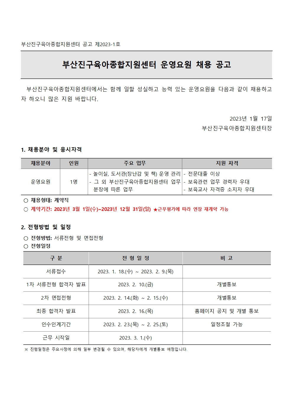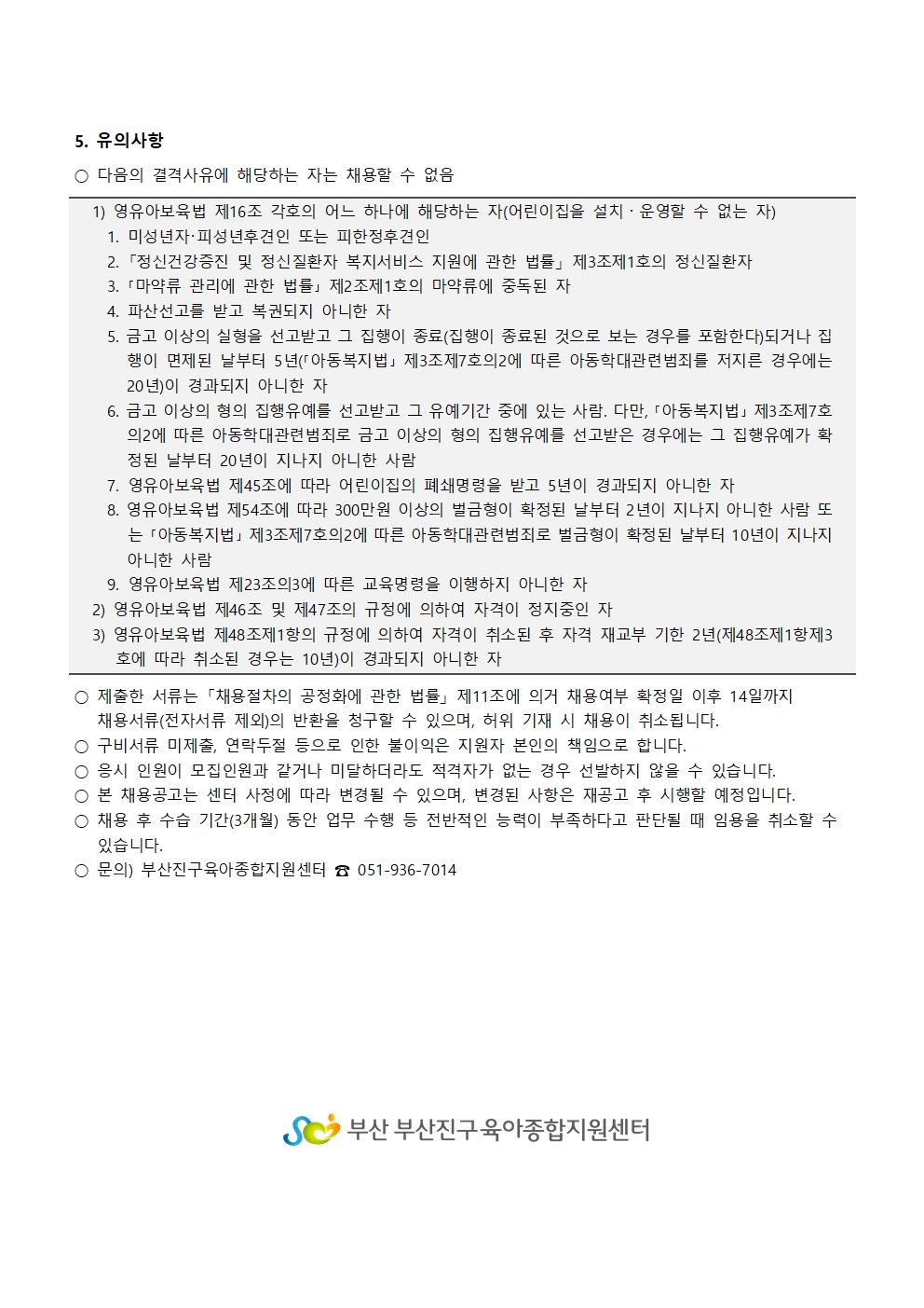 [ä¿ë°ø°í] ºÎ»êÁø±¸À°¾ÆÁ¾ÇÕÁö¿ø¼¾ÅÍ ¿î¿µ¿ä¿ø ä¿ë °ø°í