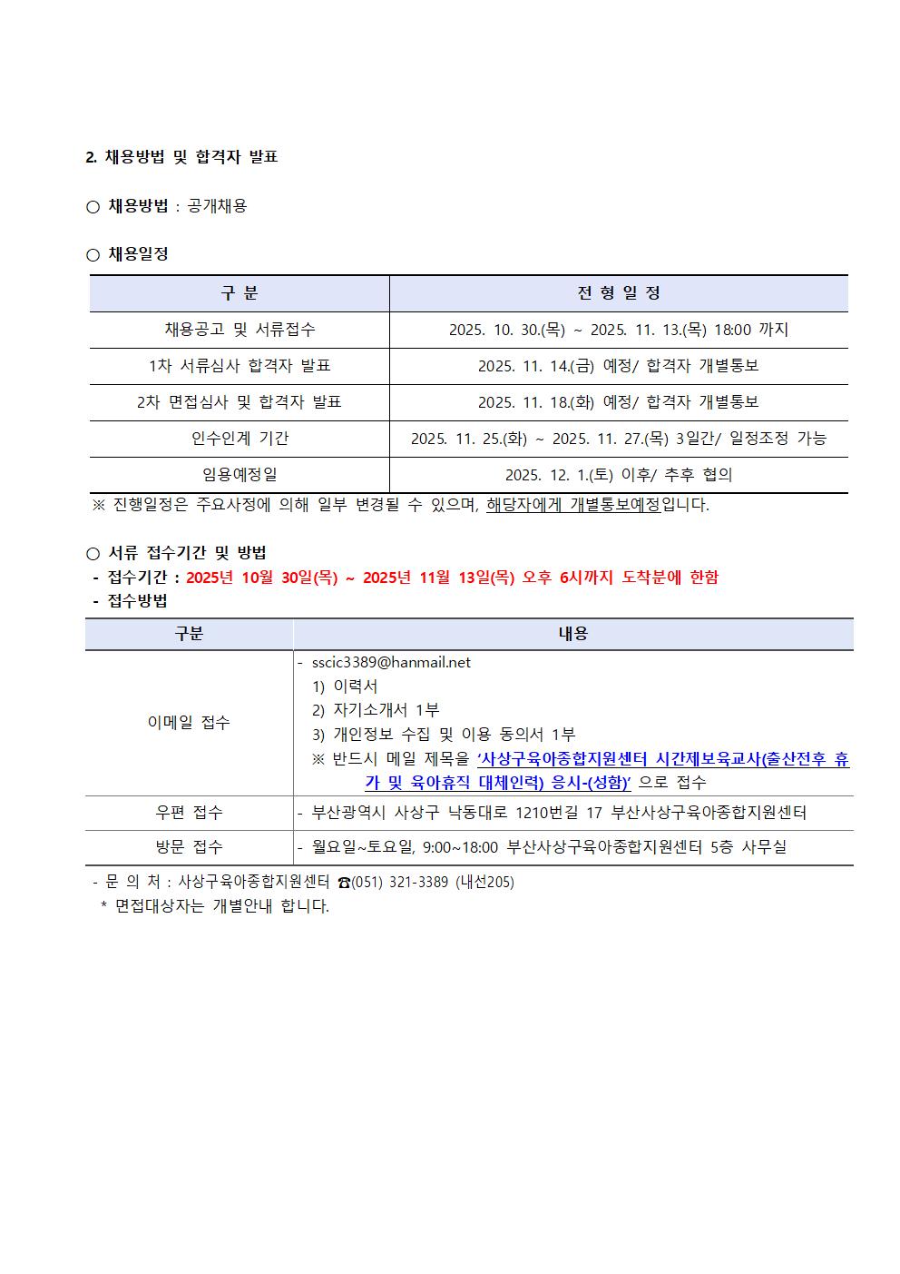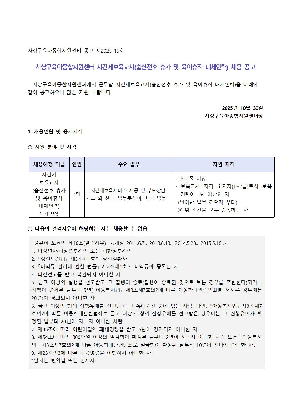 [ä¿ë°ø°í] »ç»ó±¸À°¾ÆÁ¾ÇÕÁö¿ø¼¾ÅÍ ½Ã°£Á¦º¸À°±³»ç(Ãâ»êÀüÈÄ ÈÞ°¡ ¹× À°¾ÆÈÞÁ÷ ´ëüÀηÂ) ä¿ë °ø°í