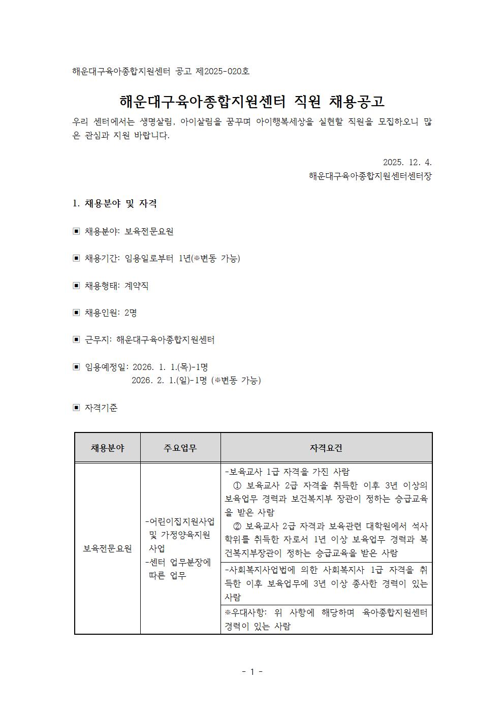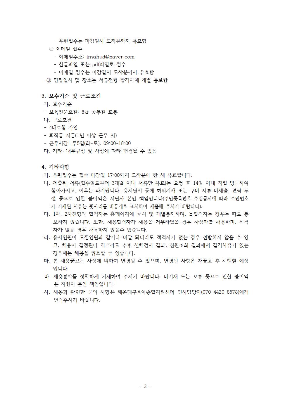 [ä¿ë°ø°í] ÇØ¿î´ë±¸À°¾ÆÁ¾ÇÕÁö¿ø¼¾ÅÍ Á÷¿ø °ø°³Ã¤¿ë(º¸À°Àü¹®¿ä¿ø) °ø°í