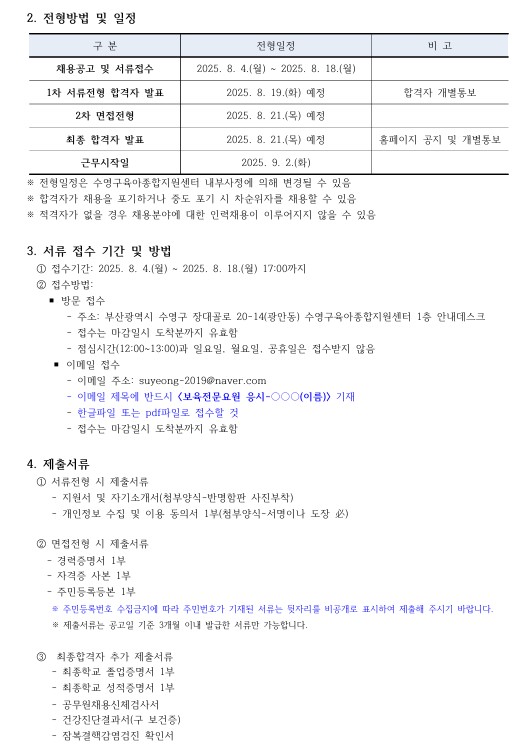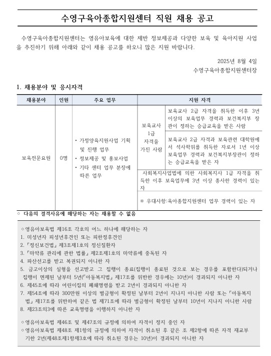 [ä¿ë°ø°í] ¼ö¿µ±¸À°¾ÆÁ¾ÇÕÁö¿ø¼¾ÅÍ Á÷¿ø ä¿ë °ø°í