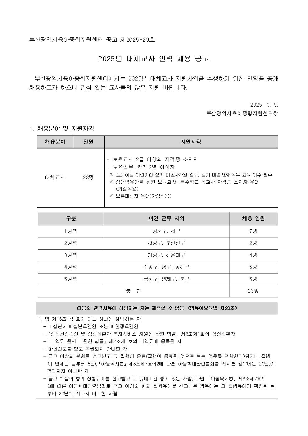 [ä¿ë°ø°í] 2025 ºÎ»ê±¤¿ª½ÃÀ°¾ÆÁ¾ÇÕÁö¿ø¼¾ÅÍ ´ëü±³»ç ä¿ë °ø°í