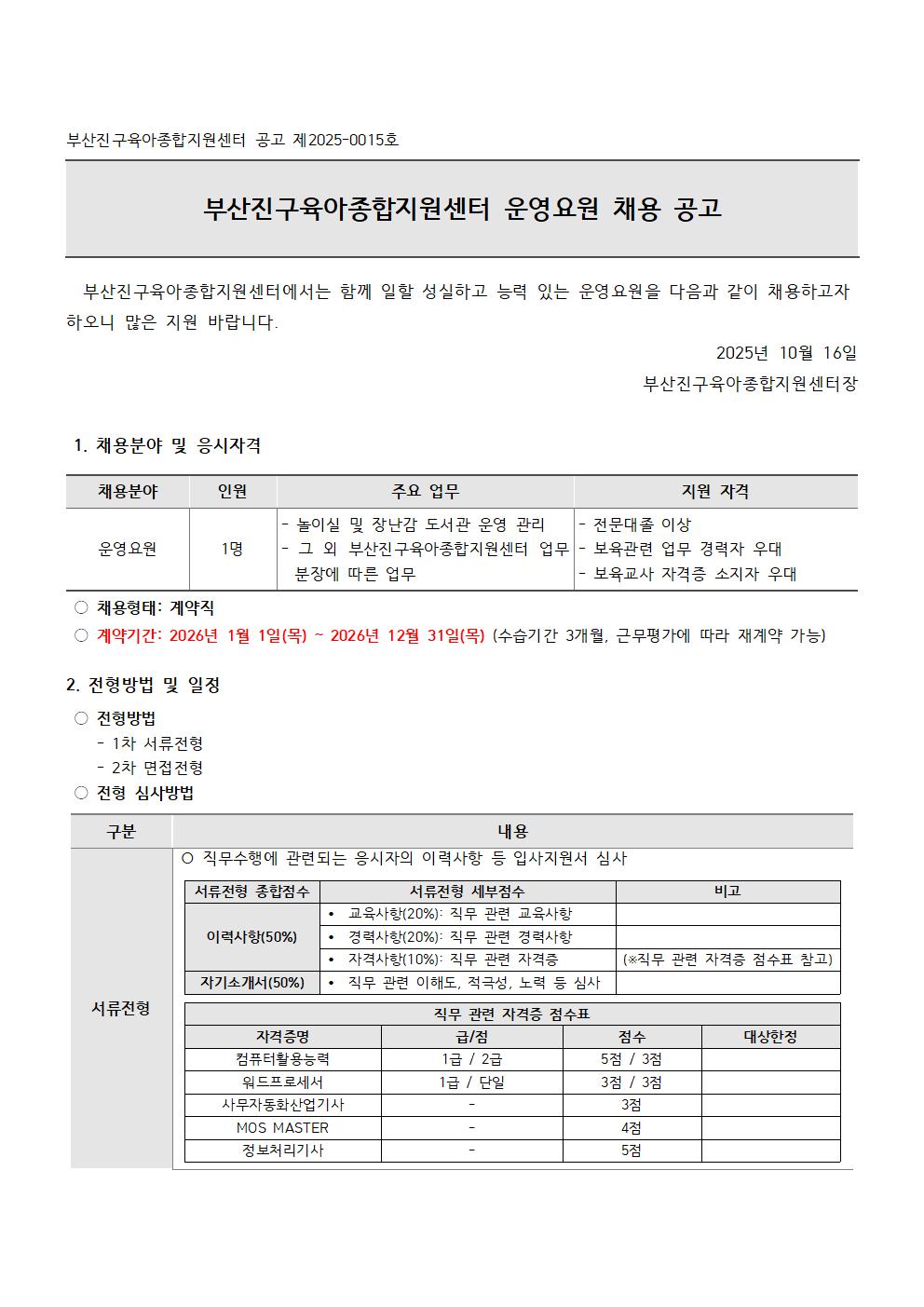 [ä¿ë°ø°í] ºÎ»êÁø±¸À°¾ÆÁ¾ÇÕÁö¿ø¼¾ÅÍ ¿î¿µ¿ä¿ø ä¿ë °ø°í