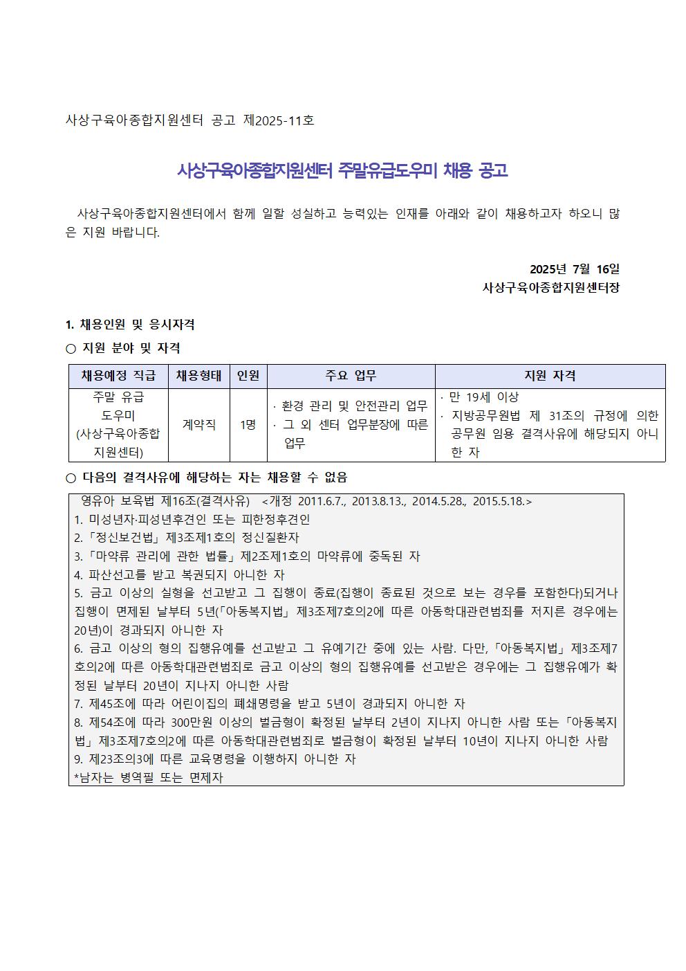 [ä¿ë°ø°í] »ç»ó±¸À°¾ÆÁ¾ÇÕÁö¿ø¼¾ÅÍ ÁÖ¸» À¯±Þ µµ¿ì¹Ì ä¿ë °ø°í¹® °Ô½Ã¿äû