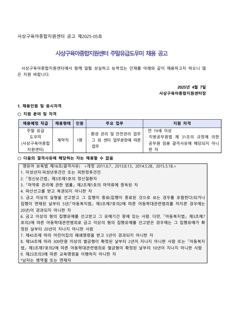[ä¿ë°ø°í] »ç»ó±¸À°¾ÆÁ¾ÇÕÁö¿ø¼¾ÅÍ ÁÖ¸»À¯±Þµµ¿ì¹Ì ä¿ë °ø°í¹®