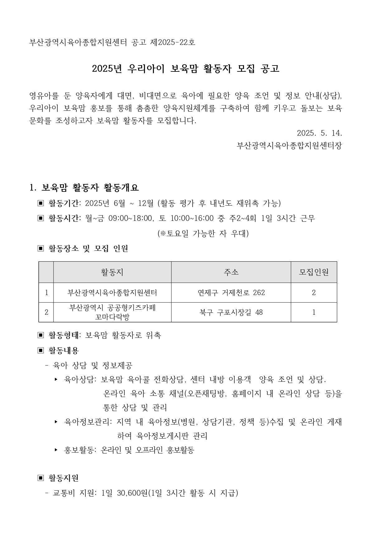 [ä¿ë°ø°í] 2025³â ¿ì¸®¾ÆÀÌ º¸À°¸¾ Ȱµ¿ÀÚ ¸ðÁý °ø°í
