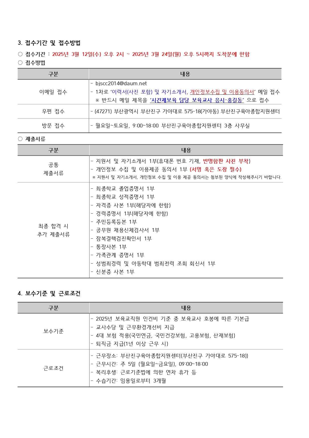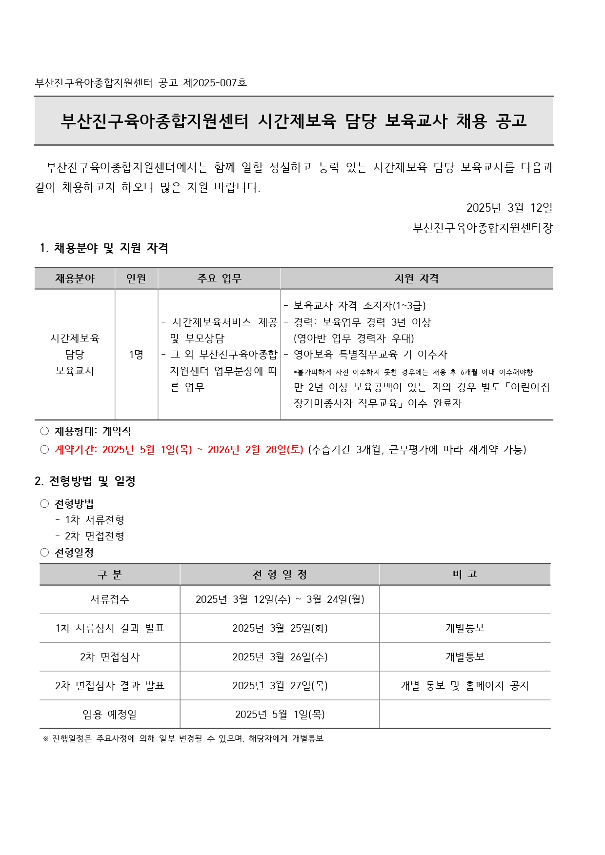 [ä¿ë°ø°í] ºÎ»êÁø±¸À°¾ÆÁ¾ÇÕÁö¿ø¼¾ÅÍ ½Ã°£Á¦º¸À° ´ã´ç º¸À°±³»ç ä¿ë °ø°í