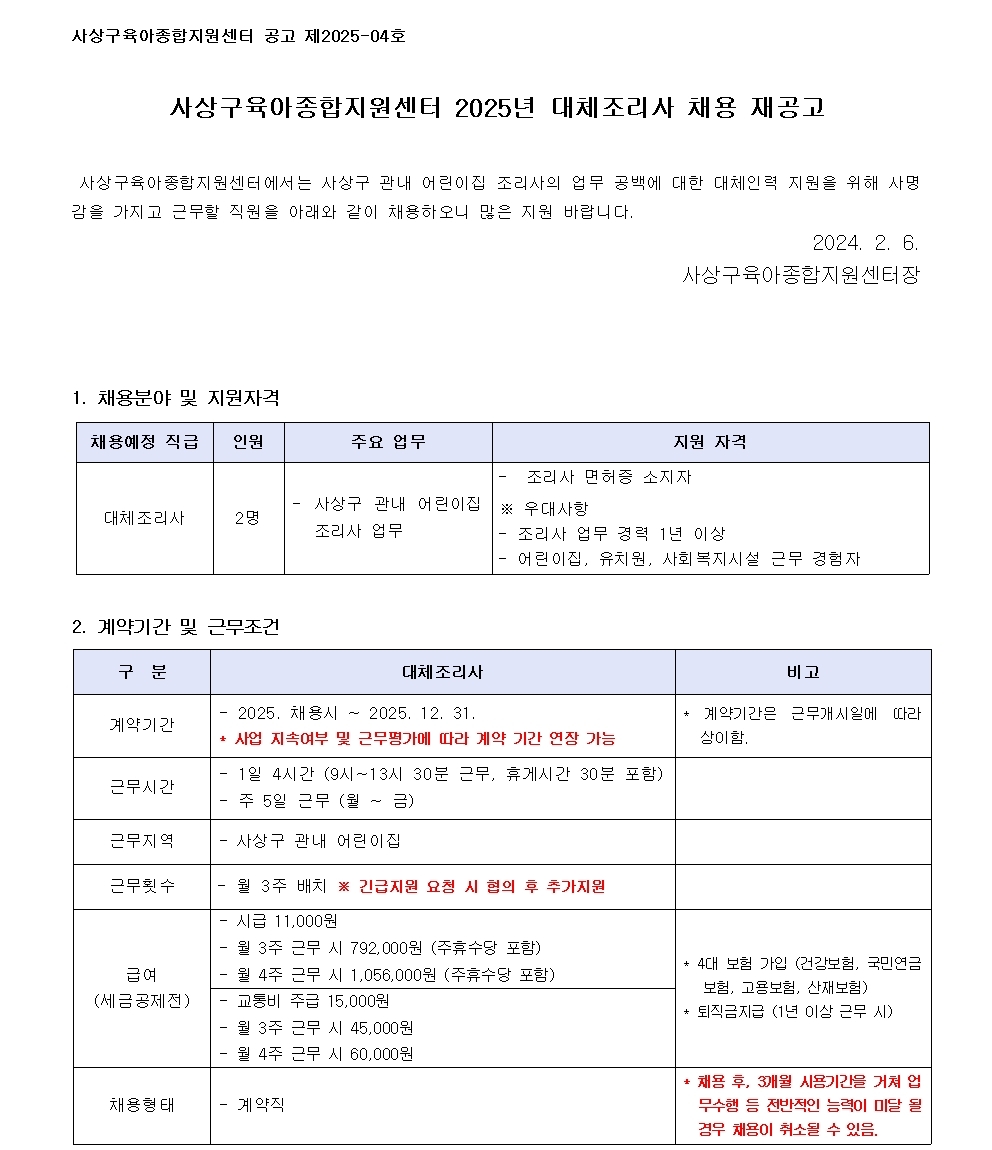 [ä¿ë°ø°í] »ç»ó±¸À°¾ÆÁ¾ÇÕÁö¿ø¼¾ÅÍ 2025³â ´ëüÁ¶¸®»ç ä¿ë Àç°ø°í