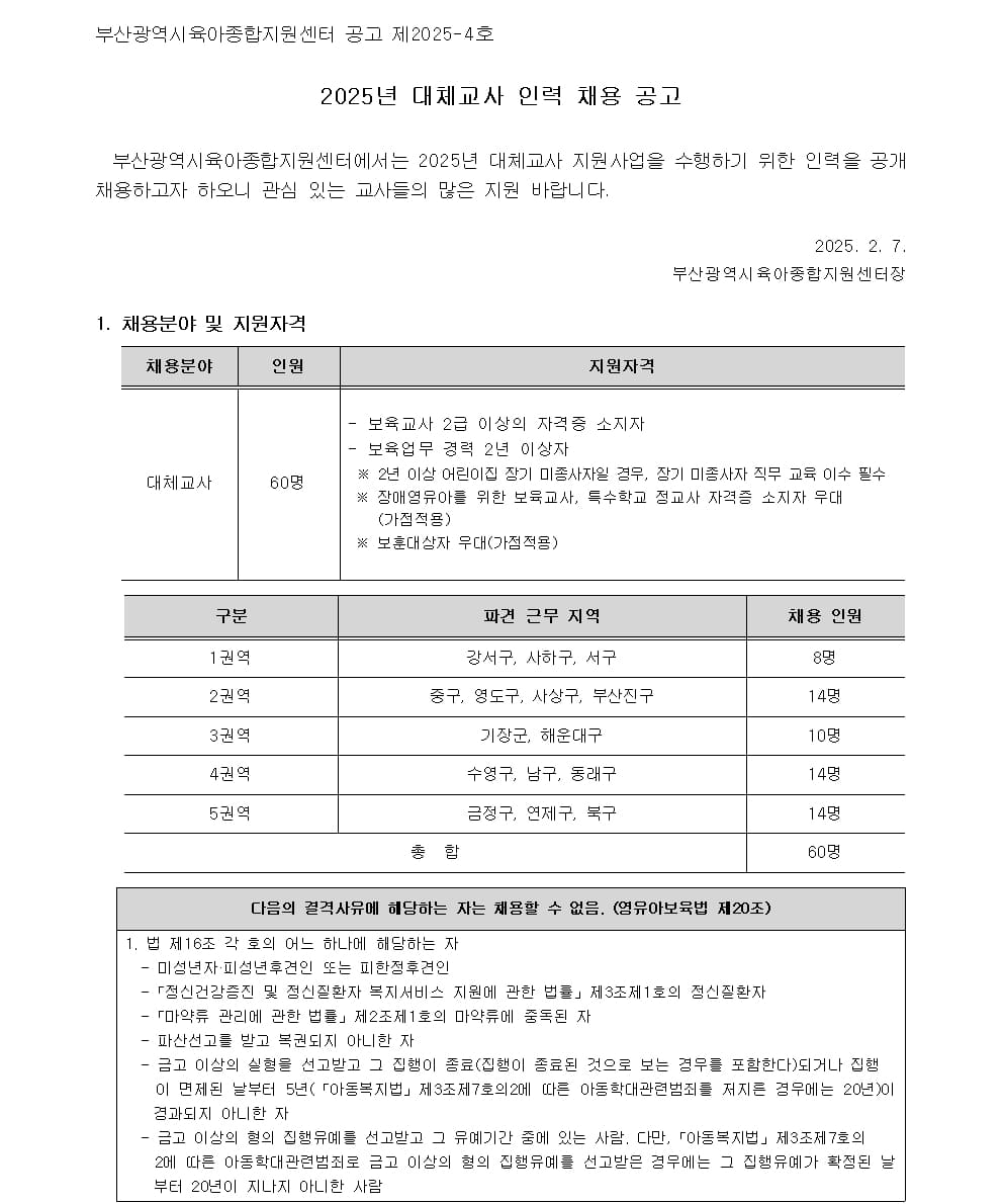 [ä¿ë°ø°í] ºÎ»ê±¤¿ª½ÃÀ°¾ÆÁ¾ÇÕÁö¿ø¼¾ÅÍ 2025³â ´ëü±³»ç Àη ä¿ë °ø°í