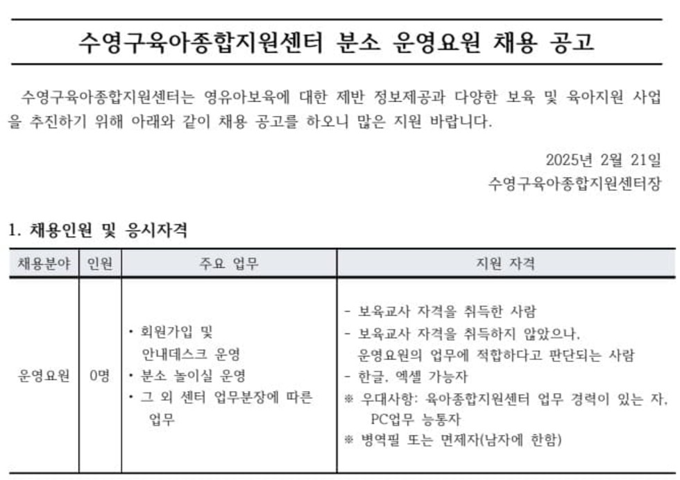 [ºÙÀÓ1]¼ö¿µ±¸ À°¾ÆÁ¾ÇÕÁö¿ø¼¾ÅÍ Ã¤¿ë°ø°í¹®(ºÐ¼Ò ¿î¿µ¿ä¿ø).hwp