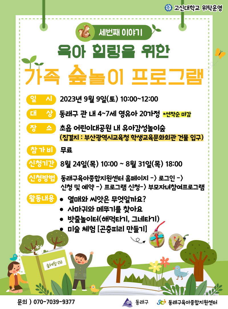 | ±âŸ»çÇ× | ½£Ã¼Çè Àå¼Ò´Â ÃÊÀ¾ ¾î¸°ÀÌ´ë°ø¿ø ³» À¯¾Æ°¨¼º³îÀ̽£ÀÔ´Ï´Ù. Áý°áÀå¼Ò´Â ºÎ»ê±¤¿ª½Ã±³À°Ã» Çлý±³À°¹®Èȸ°ü °Ç¹° ÀÔ±¸À̸ç ÁÖÂ÷´Â ºÎ»ê±¤¿ª½Ã±³À°Ã» Çлý±³À°¹®Èȸ°ü¿¡ ÁÖÂ÷ÇÏ½Ã¸é µË´Ï´Ù. (*ÁÖÂ÷ºñ Àڱ⠺δã) * ¿ÜºÎ¿¡¼ ÁøÇàµÇ´Â ÇÁ·Î±×·¥À¸·Î ¹Ýµå½Ã ÀÏÁ¤ ¹× Àå¼Ò È®ÀÎ ¹Ù¶ø´Ï´Ù. * ¼¾ÅÍȸ¿ø¸¸ °¡´ÉÇÏ¿À´Ï Âü°íÇϽñ⠹ٶø´Ï´Ù. * ½Åû È®Á¤ ÈÄ¿¡´Â °¡Á·Âü¿©¼ö ÆÄ¾ÇÀ¸·Î °³º° ¿¬¶ô µå¸± ¿¹Á¤ÀÔ´Ï´Ù. ⦁½Åû ½Ã À¯ÀÇ»çÇ× -½£±æ üÇèÀ¸·Î À¯¸ðÂ÷´Â À̵¿ ½Ã ºÒÆíÇÒ ¼ö ÀÖÀ¸´Ï ¿¬·É¿¡ ÁؼöÇÏ¿© ½Åû ¹Ù¶ø´Ï´Ù. -½Åû ½Ã Àڳడ 2¸í ÀÌ»óÀÎ °æ¿ìµµ 1¸íÀ¸·Î üũÇÏ¿© Áֽñ⠹ٶø´Ï´Ù. (°¡Á¤ ¼ö·Î °è»ê) -½Åû ÈÄ ½Åû³»¿ªÀ» ²À È®ÀÎÇÏ¿© ´ë±âÀںеéÀº ¼ö° °¡´ÉÇÒ °æ¿ì¿¡ ¼¾ÅÍ¿¡¼ µû·Î ¿¬¶ôÀ» µå¸³´Ï´Ù. - ´ë¸®Ãâ¼®À̳ª ¾çµµ´Â ºÒ°¡ÇÕ´Ï´Ù. ⦁ »óȲ¿¡ µû¶ó ÀÏÁ¤ ¹× ³»¿ëÀÌ º¯°æµÉ ¼ö ÀÖ½À´Ï´Ù. |
