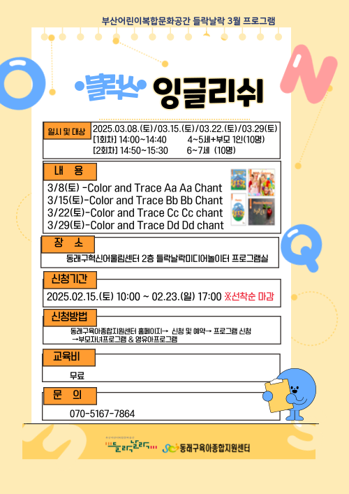 | ±âŸ»çÇ× | ⦁ º» ÇÁ·Î±×·¥Àº µ¿·¡±¸Çõ½Å¾î¿ï¸²¼¾ÅÍ µé¶ô³¯¶ô ¹Ìµð¾î³îÀÌÅÍ ³» ÇÁ·Î±×·¥½Ç¿¡¼ ÁøÇàµÇ´Â ÇÁ·Î±×·¥ÀÔ´Ï´Ù. ⦁ ½ÅûÀº ¼±Âø¼øÀ¸·Î ÁøÇàµÇ¸ç Á¤ÇØÁø Àοø ¹× ¿¬·É ¿Ü¿¡´Â ½ÅûÀÌ ºÒ°¡ÇÕ´Ï´Ù. ⦁ ½Åû ½Ã À¯ÀÇ»çÇ× - ÇÁ·Î±×·¥Àº ¾î¸°ÀÌÁý Áø±Þ ±âÁØ¿¡ µû¸§À¸·Î 3¿ùºÎÅÍ´Â 2025³â Áø±Þ ¿¬·ÉÀ¸·Î Àû¿ëµË´Ï´Ù. (19³â»ý:7¼¼, 20³â»ý:6¼¼, 21³â»ý:5¼¼, 22³â»ý:4¼¼, 23³â»ý:3¼¼) - ÇÁ·Î±×·¥ Âü¿©¿¬·ÉÀÌ ¾Æ´Ò °æ¿ì ÀÚµ¿ Ãë¼ÒµÇ´Ï ¹Ýµå½Ã ¿¬·ÉÀ» È®ÀÎÇÏ¿© ½ÅÃ»ÇØÁÖ¼¼¿ä. - ´ë±âÀÚÀÎ °æ¿ì ¼ö°´ë»óÀÌ µÉ ½Ã °³º°ÀûÀ¸·Î ¿¬¶ôµå¸³´Ï´Ù. - ´ë¸®Ãâ¼®À̳ª ¾çµµ´Â ºÒ°¡ÇÕ´Ï´Ù. - ÇÁ·Î±×·¥ ½Åû Á¢¼ö ¿Ï·á ÈÄ ÀϰýÀûÀ¸·Î ½Åû ¿Ï·á ¹®ÀÚ ¹ß¼Û ¿¹Á¤À̸ç, ½Åû³»¿ª°ú µ¿ÀÏÇÑ ÇÁ·Î±×·¥ÀÎÁö È®Àιٶø´Ï´Ù ⦁ »óȲ¿¡ µû¶ó ÇÁ·Î±×·¥ ÀÏÁ¤ ¹× ³»¿ëÀÌ º¯°æµÉ ¼ö ÀÖ½À´Ï´Ù ¡Ø ¹®ÀÇ»çÇ× :070-5167-7864 |