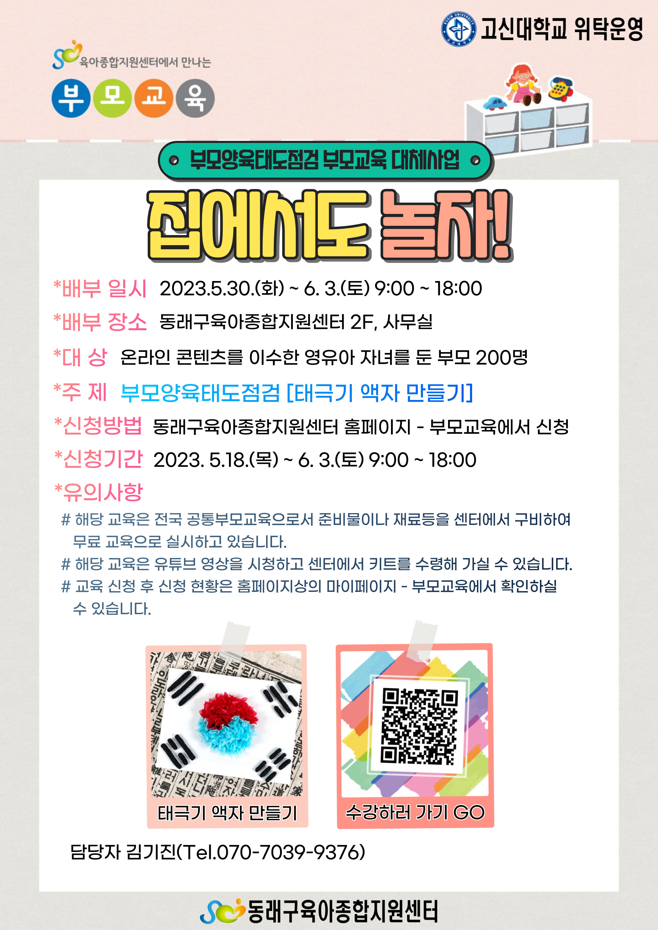 | ±âŸ»çÇ× | # ŰƮ ¹èºÎÀÏÀº 2023³â 5¿ù 30ÀÏ(È) ~ 6¿ù 3ÀÏ(Åä) 9:00 ~ 18:00 ÀÔ´Ï´Ù. ¡Ø ¹èºÎ ÀÏÁ¤ ³» ¼ö·ÉÇÏÁö ¾ÊÀ¸½Ã¸é ÀÚµ¿À¸·Î ½ÅûÀÌ Ãë¼ÒµË´Ï´Ù. # ±³À° ¼ö°Àº ¾È³»¹®¿¡ »ðÀÔµÈ QRÄÚµå or ¸µÅ©(https://youtube.com/playlist?list=PLKdaz-DdzC4dV0UixkLernnaTzOcAB0Gd)·Î Á¢¼Ó ÈÄ ¼ö°ÇÏ½Ã¸é µË´Ï´Ù. # ÇØ´ç ±³À°Àº À̼öÁõÀ» µû·Î ¹ß±ÞÇØ µå¸®Áö ¾ÊÀ¸´Ï, ¾î¸°ÀÌÁý¿¡¼ À̼öÁõ ¿äû ½Ã ±³À° ¼ö° »çÁø°ú ŰƮ ¼ö·É »çÁøÀ» ÃÔ¿µÇÏ¿© Á¦ÃâÇØ Áֽñ⠹ٶø´Ï´Ù. # ŰƮ ¹èºÎ´Â 1°¡Á¤ ´ç 1°³¸¦ ¿øÄ¢À¸·Î ÇÏ¿À´Ï, ÀÚ³à¼ö°¡ ¿©·¯¸íÀÌ½Ç °æ¿ì ¾Æ¹ö´Ô°ú ¾î¸Ó´ÔÀÌ µû·Î ±³À°À» ½ÅûÇÏ¿© ÃÖ´ë 2°³±îÁö ¼ö·ÉÇÏ½Ç ¼ö ÀÖ½À´Ï´Ù. ¡Ø ½ÅûÇϽŠȨÆäÀÌÁö IDÀÇ À̸§°ú ¿¬¶ôó¸¦ ±âÁØÀ¸·Î ¹èºÎÇØ µå¸®¸ç, À̸§À̳ª ¿¬¶ôó°¡ Áߺ¹µÉ °æ¿ì ŰƮ ¼ö·ÉÀÌ ¾î·Á¿ï ¼ö ÀÖ½À´Ï´Ù. # ±³À° ÀÚ·á´Â ºÎ¸ð¾çÀ°ÅµµÁ¡°Ë - ¾çÀ°Åµµ ¹üÁÖ¨é¿Í ¿¬°èÇÑ Å°Æ®·Î 6¿ù 6ÀÏ ÇöÃæÀÏÀ» ¸Â¾Æ űر⠾×ÀÚ ¸¸µé±â ŰƮ·Î ¹èºÎµË´Ï´Ù. # ŰƮ ¼ö·É ½Ã ½Åû¼¸¦ ÀÛ¼º ÈÄ ¼ö·É ¸í´Ü¿¡ ¼¸íÇØ Áֽñ⠹ٶø´Ï´Ù. ¡Ø ŰƮ ¼ö·É ½Ã ´ã´çÀÚ°¡ »ó¼¼È÷ ¾È³»µå¸± ¿¹Á¤À̸ç, º°µµÀÇ Áغñ¹°Àº ¾ø½À´Ï´Ù. # ŰƮ ¼ö·É ÈÄ ¸¸Á·µµ Á¶»ç¸¦ Á¦ÃâÇØ Áֽñ⠹ٶø´Ï´Ù. ¡Ø ¸¸Á·µµ Á¶»ç´Â ŰƮ¸¦ ¼ö·ÉÇϽнÅûÀÚ¸¦ ´ë»óÀ¸·Î 6¿ù 3ÀÏ Àϰý SMS·Î ¹èºÎµÉ ¿¹Á¤ÀÌ¿À´Ï, ´çÀÏ Á¦ÃâÀ» ºÎʵ右´Ï´Ù. # űر⠾×ÀÚ ¸¸µé±â ŰƮÀÇ ¸¸µå´Â ¹ýÀº ÷ºÎÆÄÀÏÀÇ ¡¸Å±ر⠾×ÀÚ ¸¸µé±â¡¹¸¦ Âü°íÇØ Áֽñ⠹ٶø´Ï´Ù. |