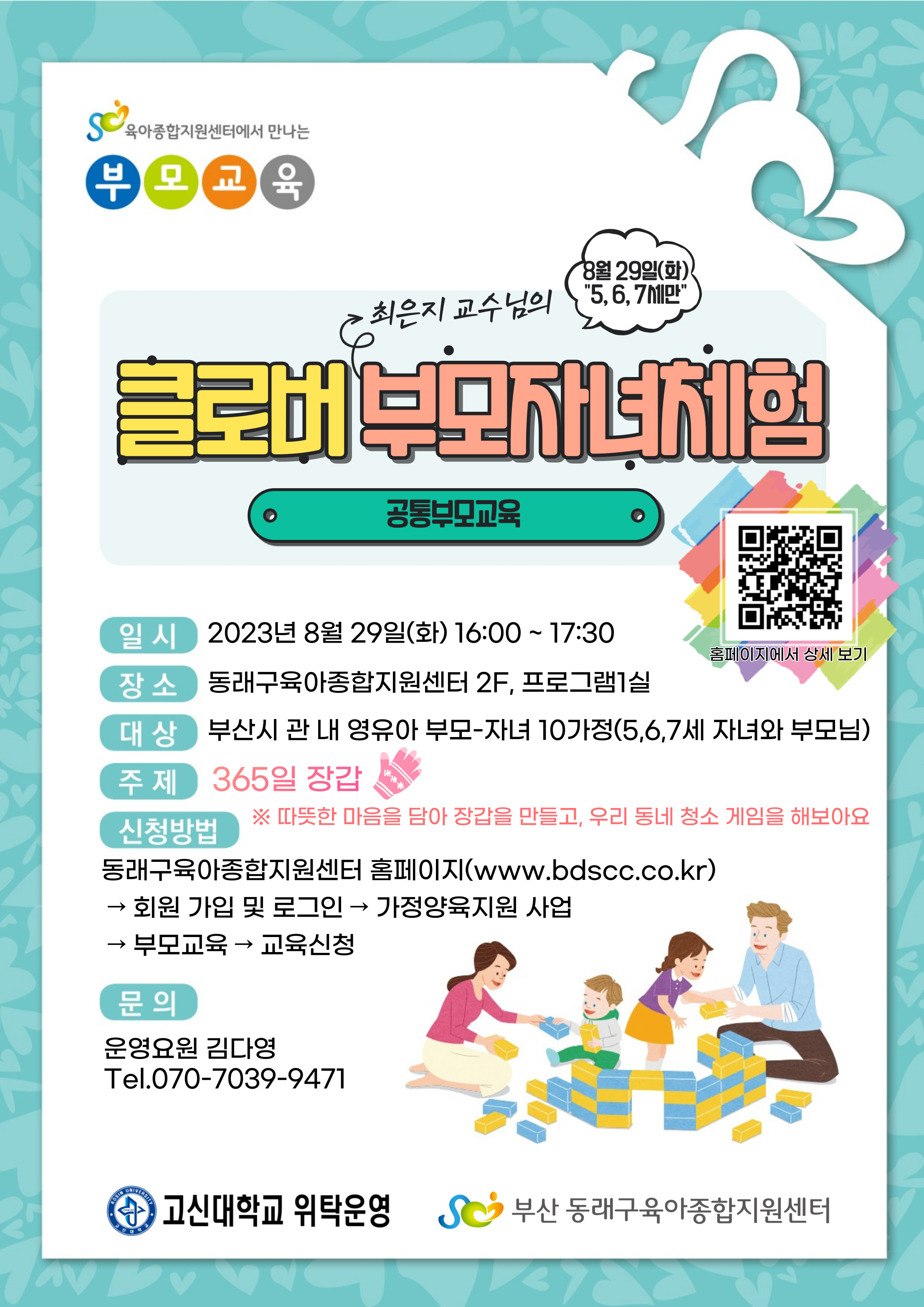 | ±âŸ»çÇ× | # ÇØ´ç ±³À°Àº Àü±¹ °øÅë ºÎ¸ð±³À°À¸·Î ÁøÇàµÇ¸ç Âü°¡ºñ ¹× ±³Àçºñ°¡ ¹«·áÀÔ´Ï´Ù. # ÇØ´ç ±³À°Àº ºÎ¸ð-ÀÚ³à ÇÁ·Î±×·¥À¸·Î ºÎ¸ð´Ô°ú Àڳడ ÇÑ °¡Á¤À¸·Î Âü¿©ÇÒ ¼ö ÀÖ½À´Ï´Ù. ´Ü, Âü¿©ÀÚ³à ¼ö°¡ 1¸í ÀÌ»óÀÏ °æ¿ì ¹Ýµå½Ã ´ã´çÀÚ¿¡°Ô ¿¬¶ôÇØ Áֽñ⠹ٶø´Ï´Ù. # ÇØ´ç ±³À°ÀÇ ½Åû ´ë»óÀº ºÎ»ê½Ã °ü³» 5,6,7¼¼ Àڳฦ µÐ ºÎ¸ð ¹× ÀÚ³àÀÔ´Ï´Ù. # ±³À° ½Åû ÈÄ ºÎµæÀÌÇÏ°Ô ±³À°À» Ãë¼ÒÇØ¾ßÇÒ °æ¿ì ´ã´çÀÚ¿¡°Ô ¿¬¶ô ¹Ù¶ø´Ï´Ù. |