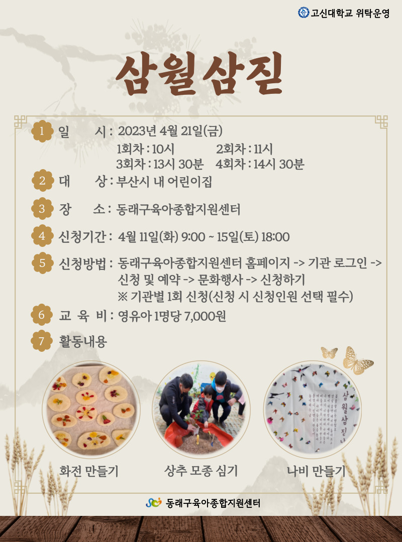 | ½Åû±â°£ | 2023-04-11(È) 09½Ã ~ 2023-04-15(Åä) 18½Ã | ||