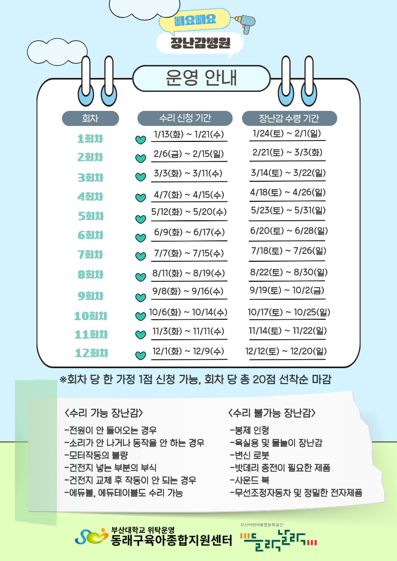 »ß¿ä»ß¿ä Àå³°¨º´¿øÀº °¡Á¤¿¡¼ °íÀå ³ Àå³°¨À» °¡Á¤´ç 1Á¡¾¿ Á¢¼ö¹Þ¾Æ Àü¹® ¼ö¸®¸¦ ÅëÇØ ´Ù½Ã »ç¿ëÇÒ ¼ö ÀÖµµ·Ï Áö¿øÇÏ´Â ÇÁ·Î±×·¥ÀÔ´Ï´Ù. º» ÇÁ·Î±×·¥Àº ¸Å¿ù 1ȸ ¿î¿µµÇ¸ç, ½Åû ÈÄ ¼ö¸®½Åû±â°£µ¿¾È °¡Á¤¿¡¼ °íÀå³ Àå³°¨ 1Á¡À» ÁöÂüÇÏ¿© ¹Ìµð¾î³îÀÌÅÍ·Î ¹æ¹®ÇÏ½Ã¸é µË´Ï´Ù. ¼ö¸®°¡ ¿Ï·áµÈ Àå³°¨Àº ±ú²ýÇÏ°Ô ¼Òµ¶ ÈÄ °¡Á¤À¸·Î µ¹·Áµå¸®¸ç, ¼ö¸®°¡ °¡´ÉÇÑ Àå³°¨¿¡ ÇÑÇØ Á¢¼ö°¡ ÀÌ·ç¾îÁö¿À´Ï ¸¹Àº °ü½É°ú Âü¿© ¹Ù¶ø´Ï´Ù.