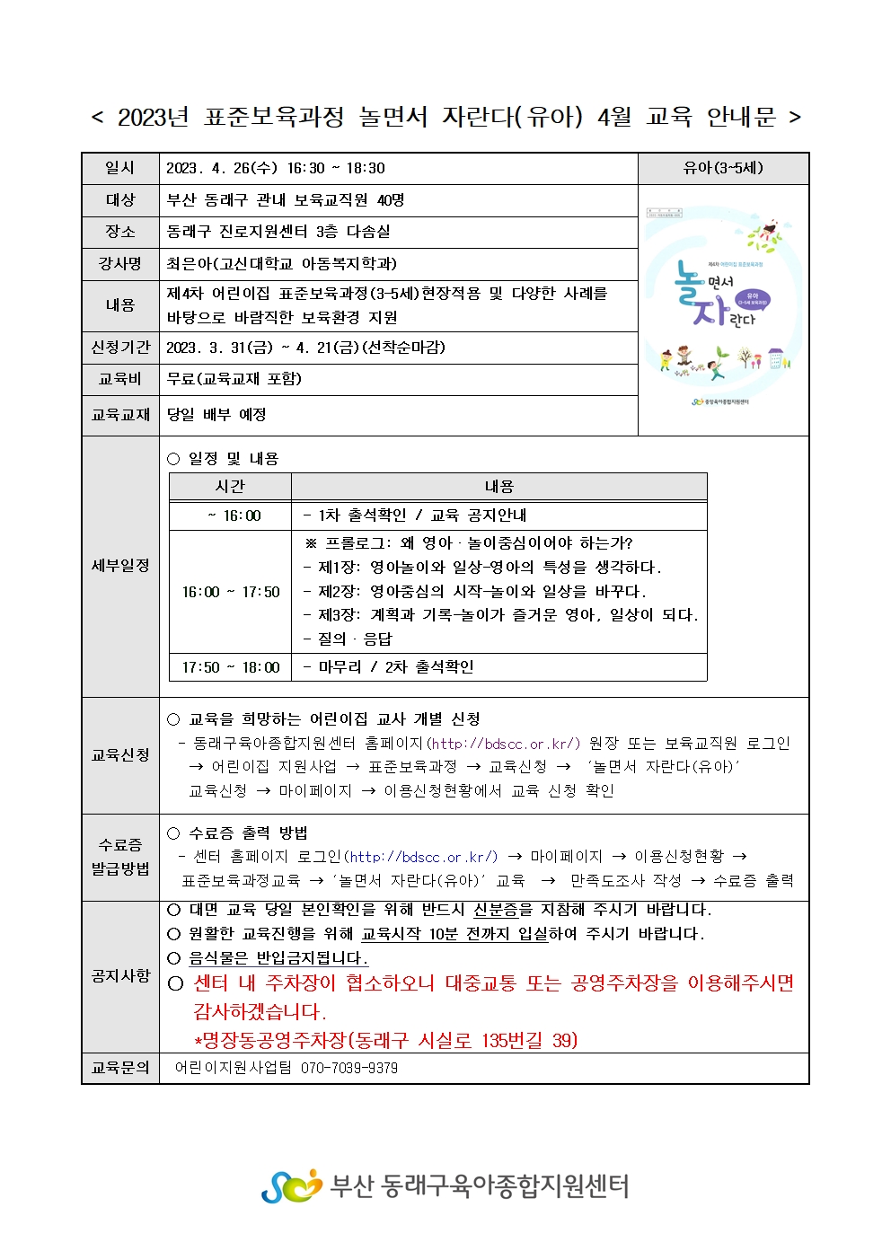 | ±³À°ÀϽà | 2023-04-26(¼ö) 16½Ã30ºÐ ~ 2023-04-26(¼ö) 18½Ã30ºÐ | ||