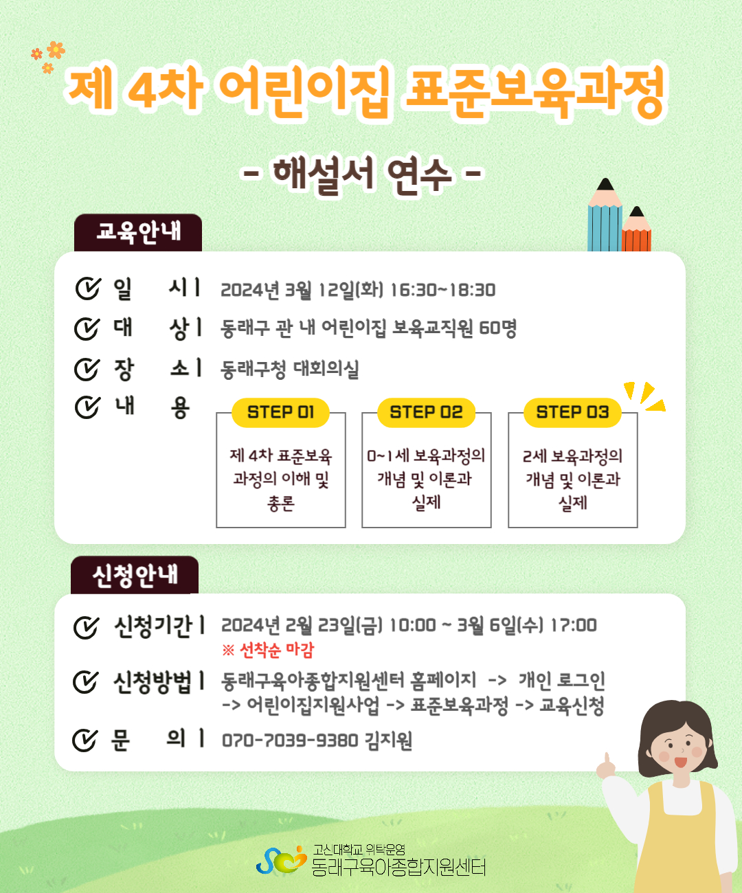 | Áغñ¹° | Á¦4Â÷ ¾î¸°ÀÌÁý Ç¥Áغ¸À°°úÁ¤ ÇØ¼³¼ ¿¬¼ö ±³Àç(±³À°´çÀϹèºÎ¿¹Á¤) | ||