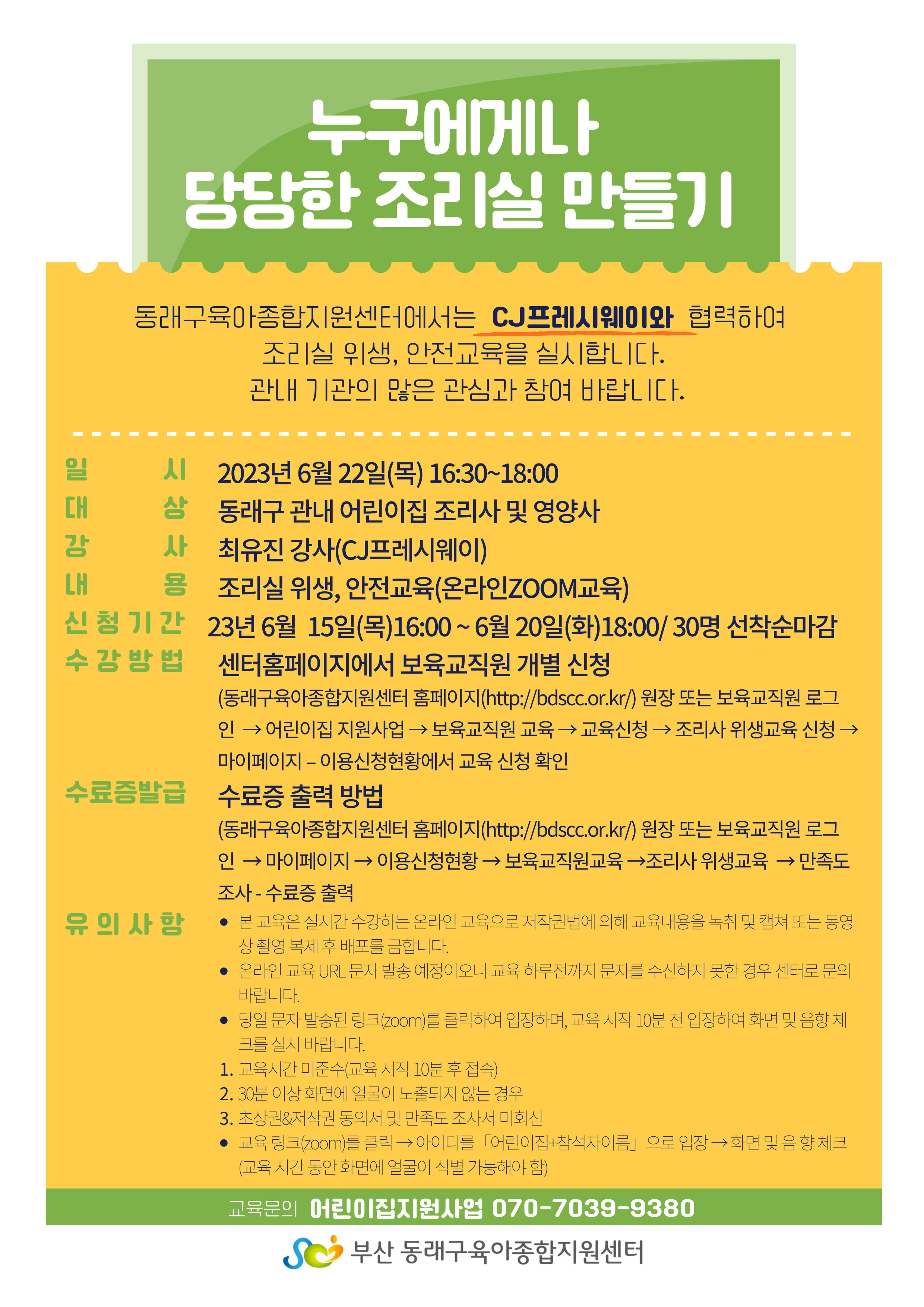 | ±³À°ÀϽà | 2023-06-22(¸ñ) 16½Ã30ºÐ ~ 2023-06-22(¸ñ) 18½Ã00ºÐ | ||