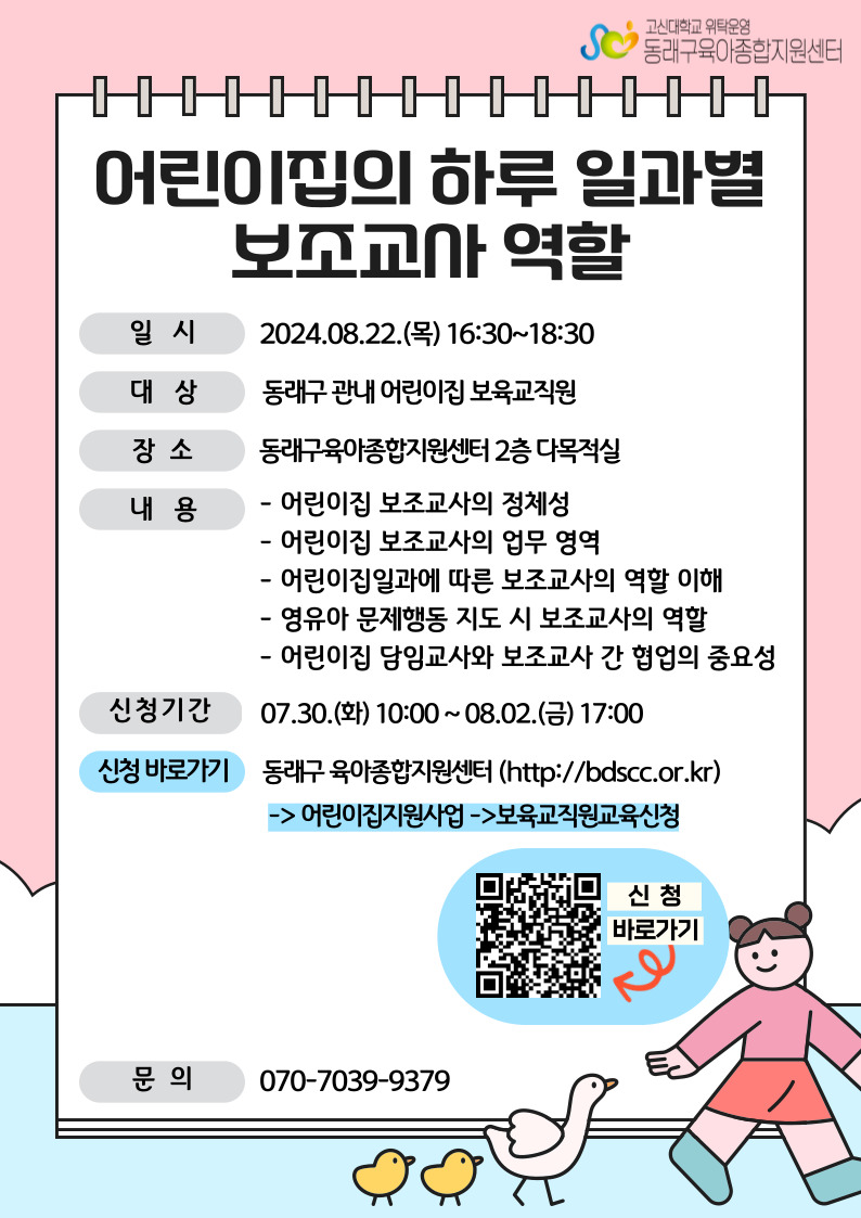 | ±³À°ÀϽà | 2024-08-22(¸ñ) 16½Ã30ºÐ ~ 2024-08-22(¸ñ) 18½Ã30ºÐ | ||