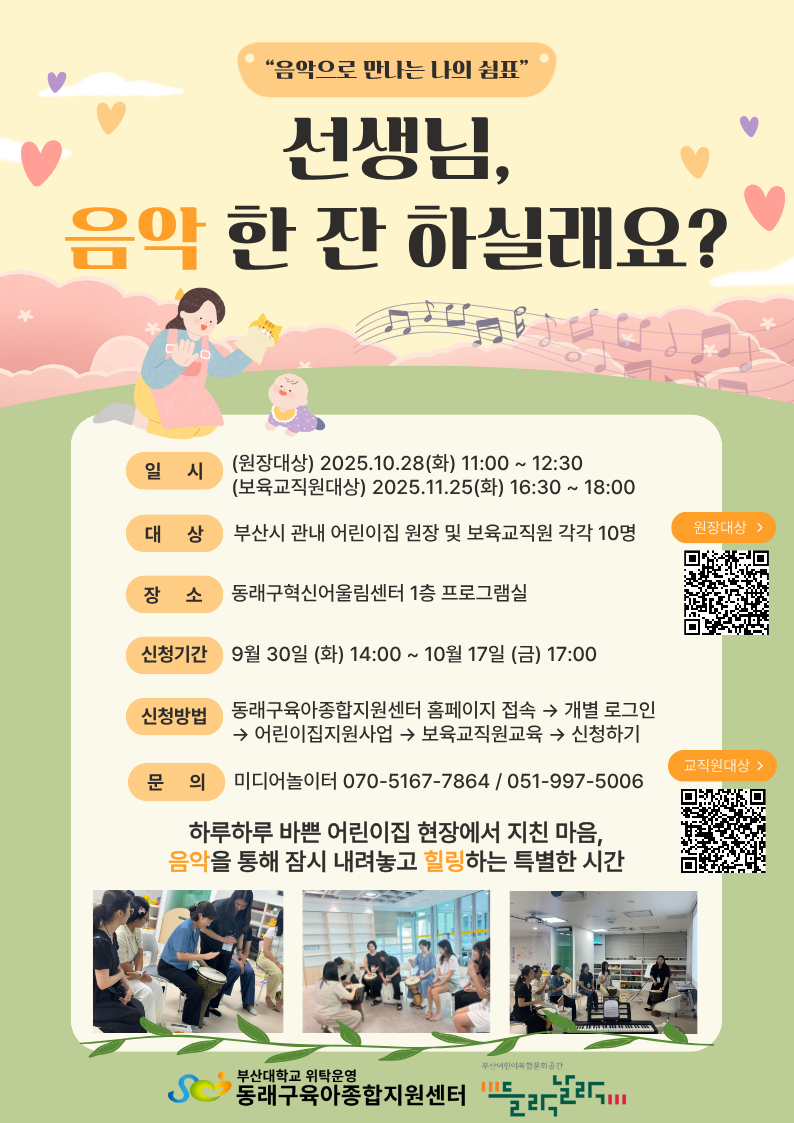 | ¼±»ý´Ô, À½¾Ç ÇÑ ÀÜ ÇϽǷ¡¿ä?(º¸À°±³Á÷¿ø´ë»ó) | |||