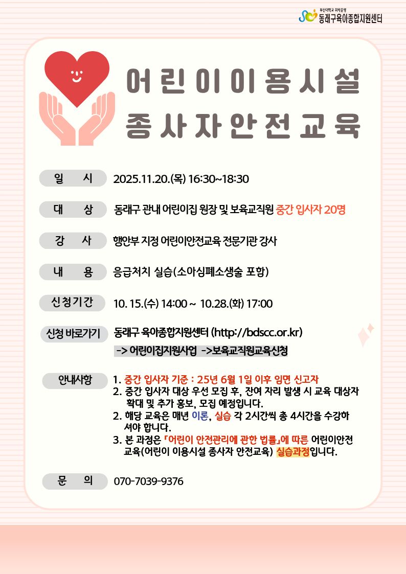 | ¡ÚÁß°£ÀÔ»çÀÚ(6/1ÀÌÈÄ)¡Ú ¾î¸°ÀÌÀÌ¿ë½Ã¼³Á¾»çÀÚ¾ÈÀü±³À° | |||