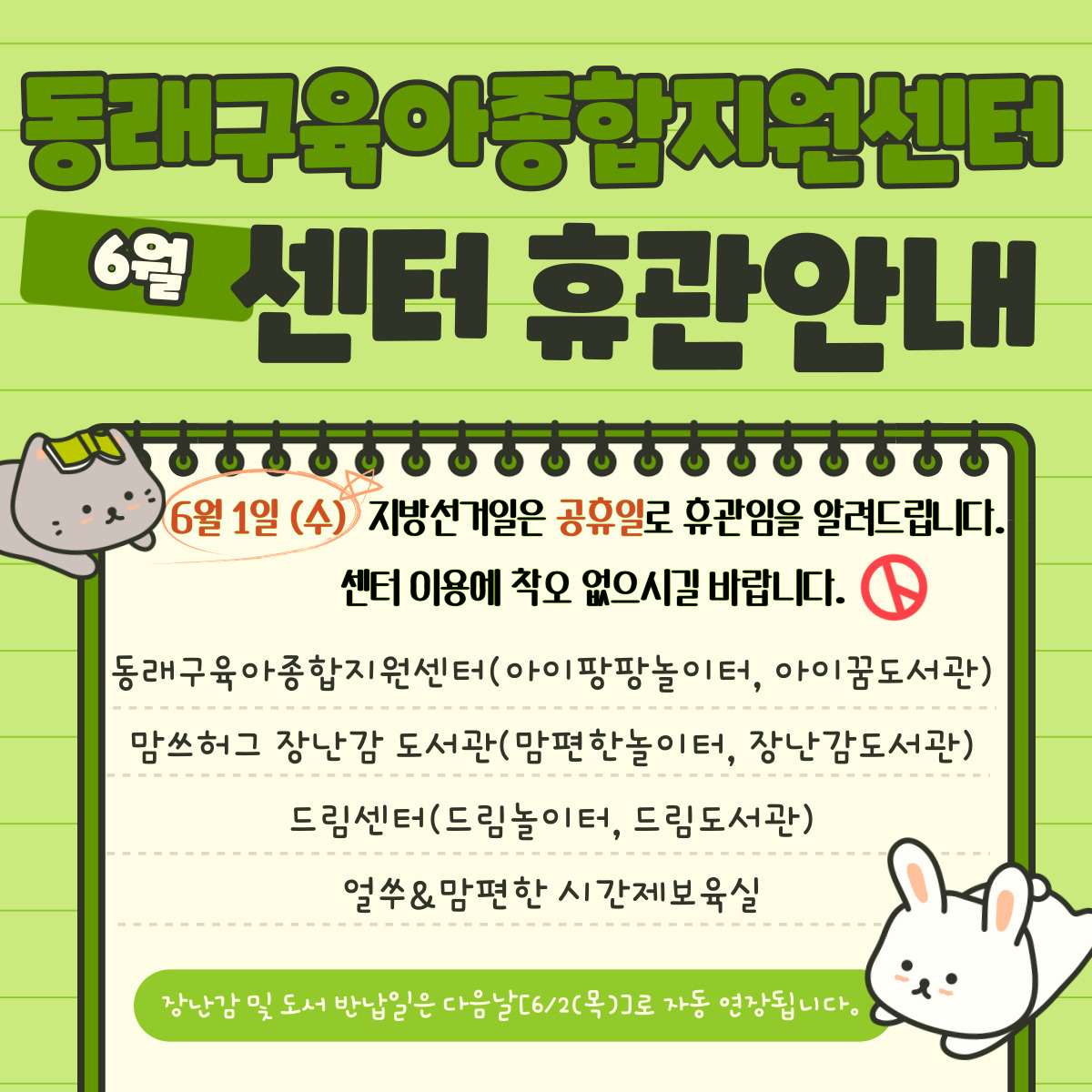 [µ¿·¡±¸À°¾ÆÁ¾ÇÕÁö¿ø¼¾ÅÍ 6¿ù ÈÞ°üÀÏ ¾È³»]